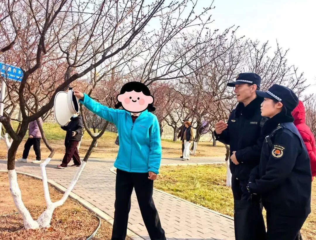 最近这段时间,明城墙遗址公园的梅花早早开启了“报春”模式,成了不少朋友的打卡好去处。绝大多数游客都能做到赏花拍花不毁花,可也有个别游客为了拍出好看的照片,图方便把反光板、衣服就手搭到树枝上。在东花市街道综合行政执法队队员的提醒下,游客第一时间改正了自己的行为。正在花前拍照的市民赵女士说:“现在不文明游园的行为越来越少了,拍出来的画面都是美景,这样的公园大家都愿意多逛会儿。”