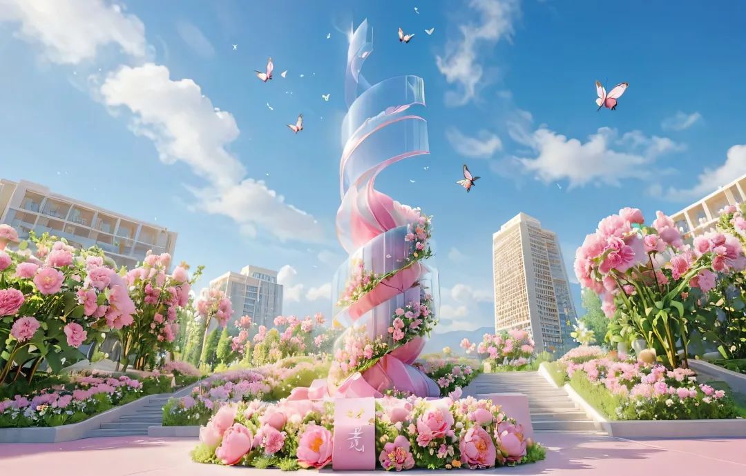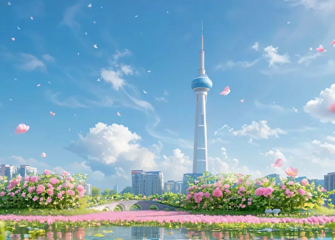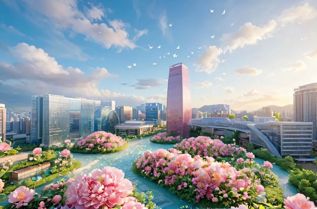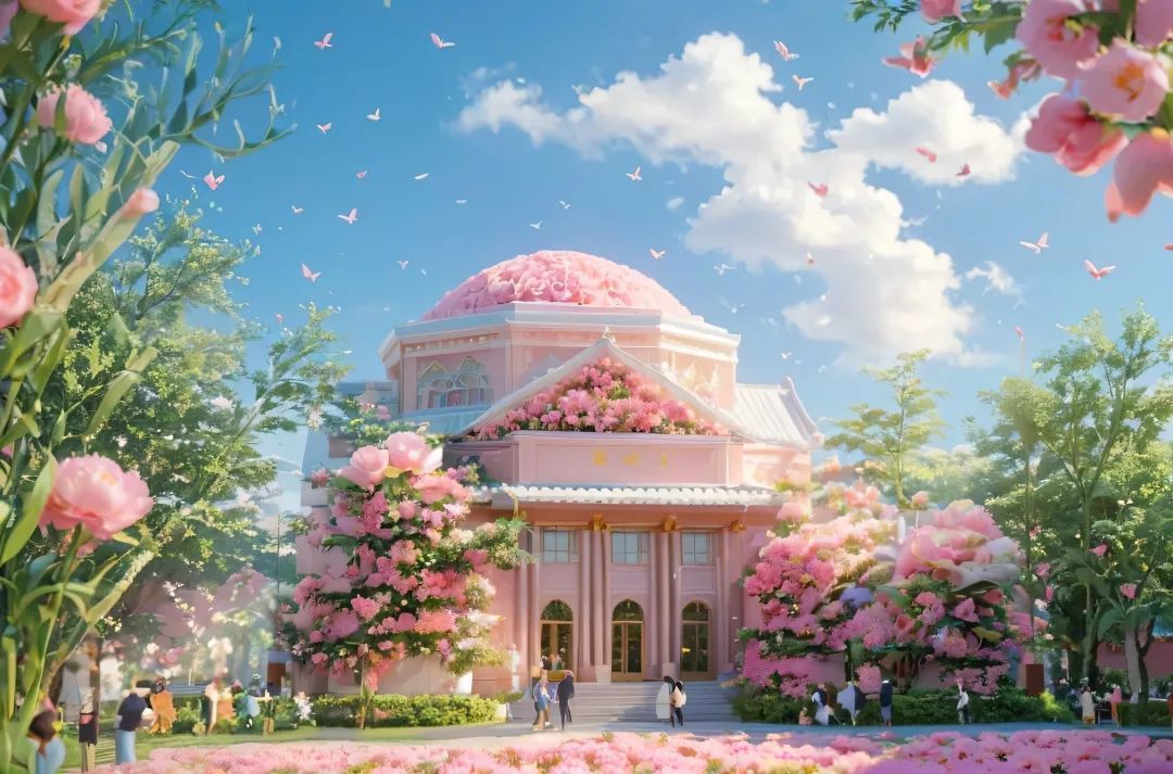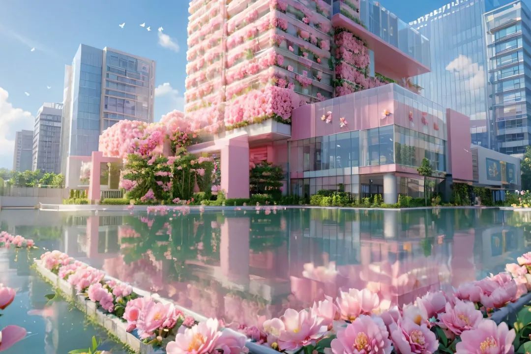 当最近迷住了所有人的AI遇上灿烂了千万年的春光,向来科技风的海淀地标建筑秒变粉嫩芭比风的梦幻花园——