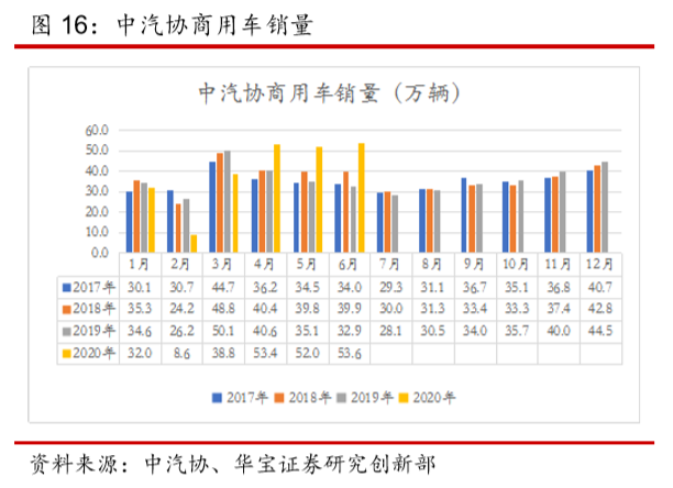 2020年6月,重卡市场16.93万辆的表现仍属优异,约是低位的2016年6月份销量的3倍。从累计销量看,2020年1-6月,中国重卡市场累计销售81.62万辆,站上了近5年1-6月累计销量的高点。