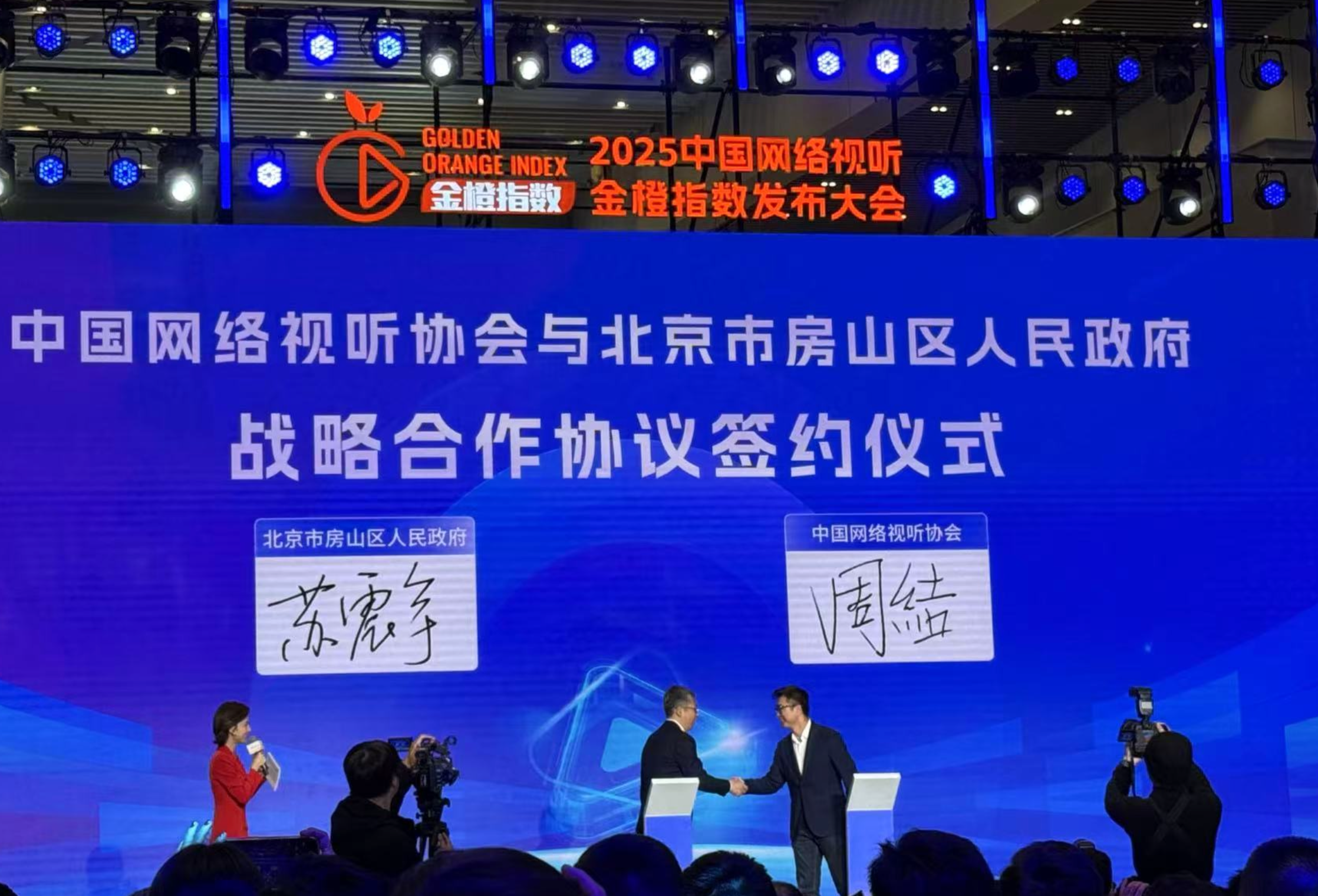 2025中国网络视听金橙指数发布大会今日(10月27日)在北京房山区中国网络视听产业园举办。会上,房山区与中国网络视听协会签署战略合作协议。