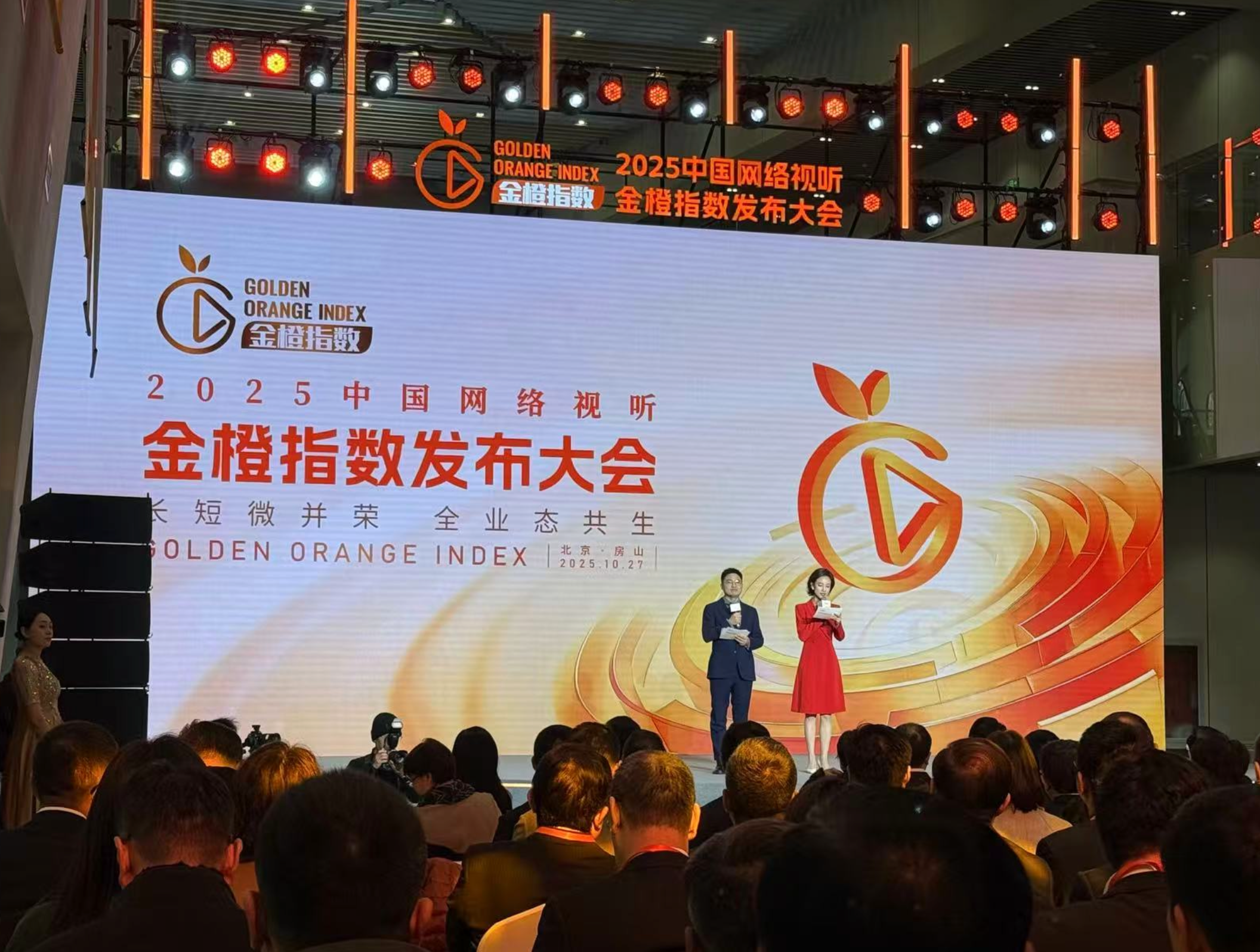 “金橙指数”是一套以大数据为主,通过算法、人工评价相结合的方式,反映网络视听作品、创作者的网络综合影响力,特别是反映网民对作品、创作者的喜爱程度的评价体系。大会以“长短微并荣·全业态共生”为主题,发布了2025中国网络视听金橙指数年度微短剧、网络剧、网络综艺、网络动画片、网络纪录片、人文知识类短视频账号等各类作品和年度微短剧主创人员的评价结果。