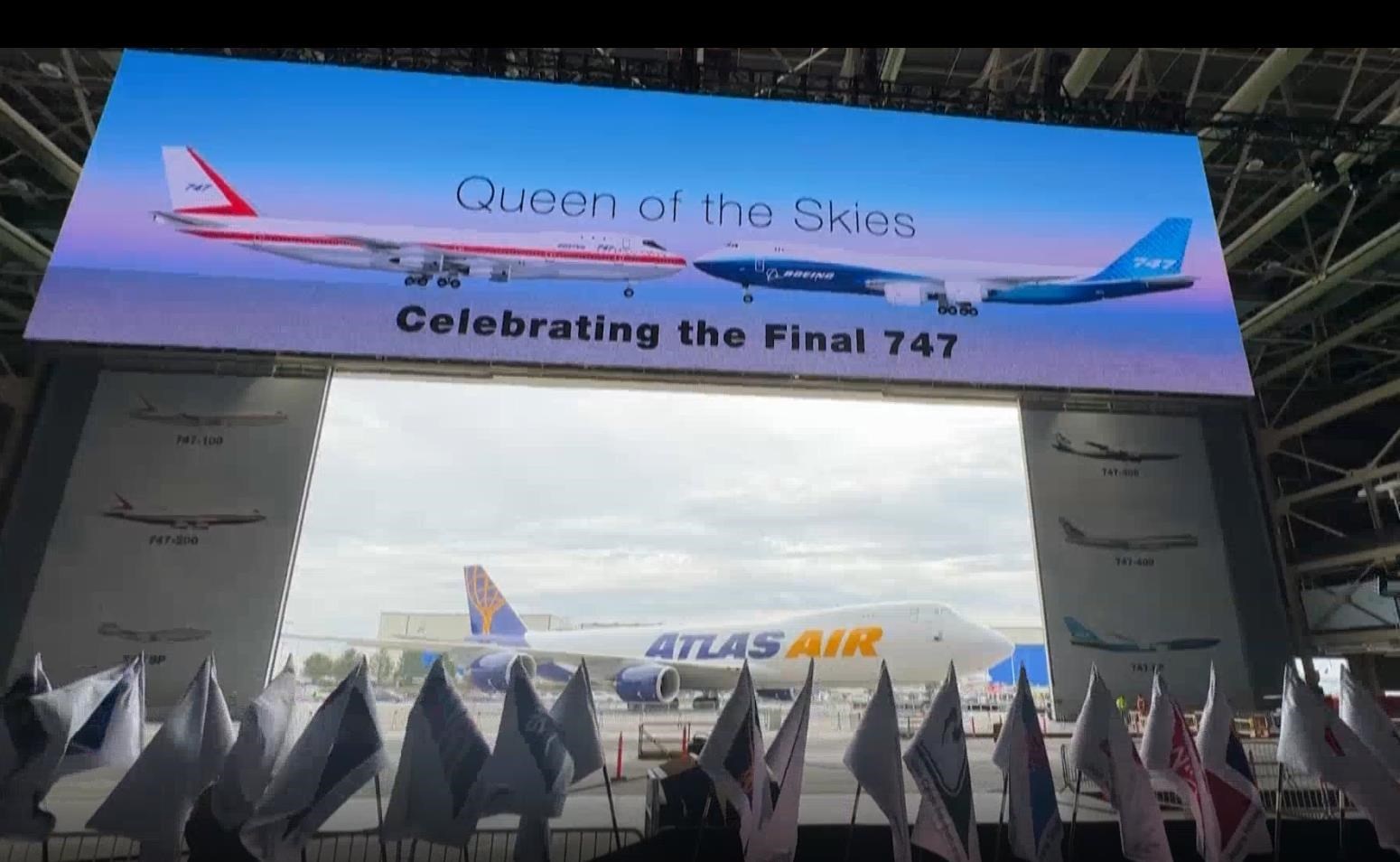 据法新社报道,交付仪式当天下午在美国西北部华盛顿州埃弗里特市的波音工厂举行。这也是波音747系列飞机的最后一次“送行会”。