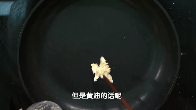 炒化黄油:平底锅中加入少许黄油,保持小火将黄油炒化。