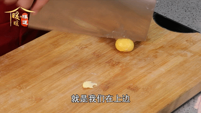 制作板栗酥:将剩馒头切成玉米粒般大小的颗粒,先将板栗蓉搓成圆球,用山药泥包裹住板栗馅,用虎口收紧攒圆后来回摔打排气。