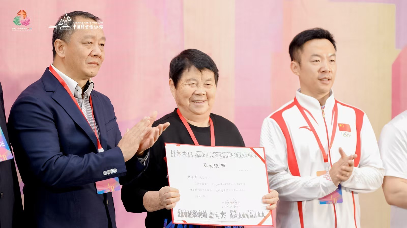 开展仪式上,参加过第1届至第3届全运会的老运动员代表邓蓉蓉在奥运冠军许海峰、郭伟阳和林清峰的见证下,向中国体育博物馆捐赠了第1届至第3届全运会历史见证物。这些珍贵的藏品,是新中国体育砥砺奋进的鲜活印记,彰显了老一辈体育人对体育事业的赤诚坚守、中华体育精神的薪火相传。国家级高级工艺美术师高俊将创作的紫砂作品《窗前的体育茶话》《盛世丰韵》捐赠给中国体育博物馆。