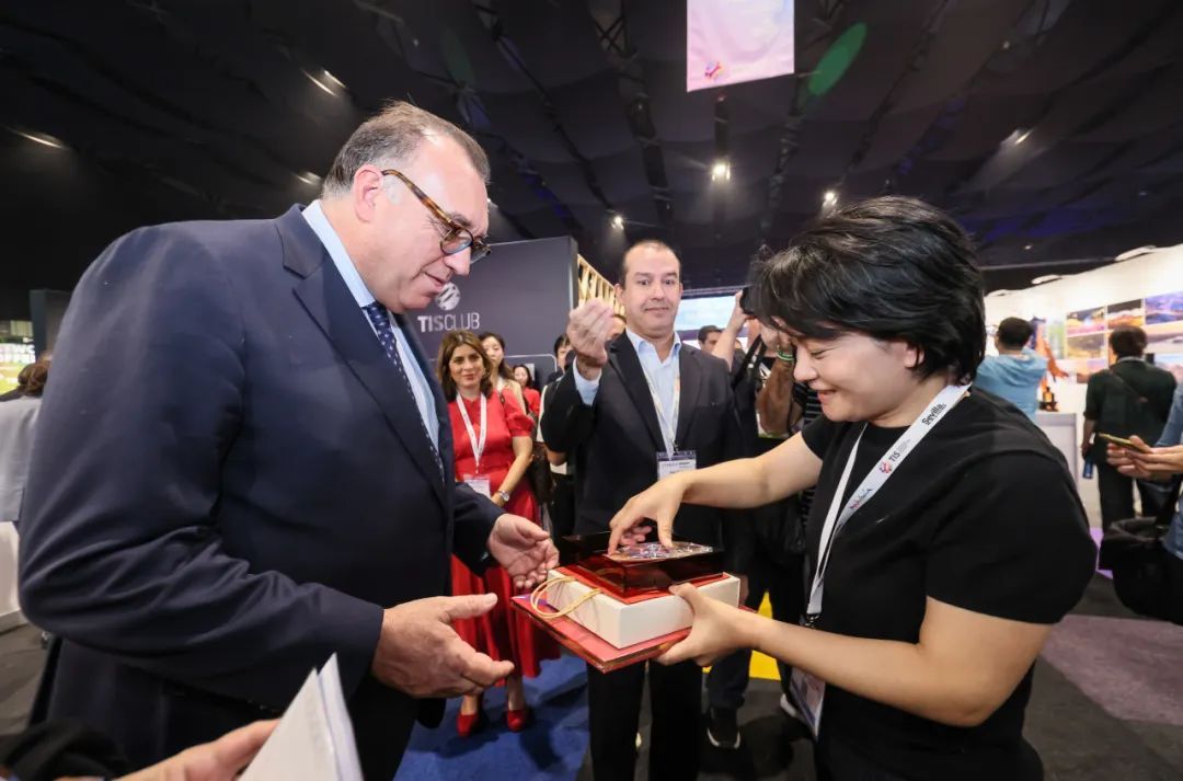 向西班牙安达卢西亚自治区旅游和对外事务部长Arturo Bernal赠送“京剧文化之旅”文创产品