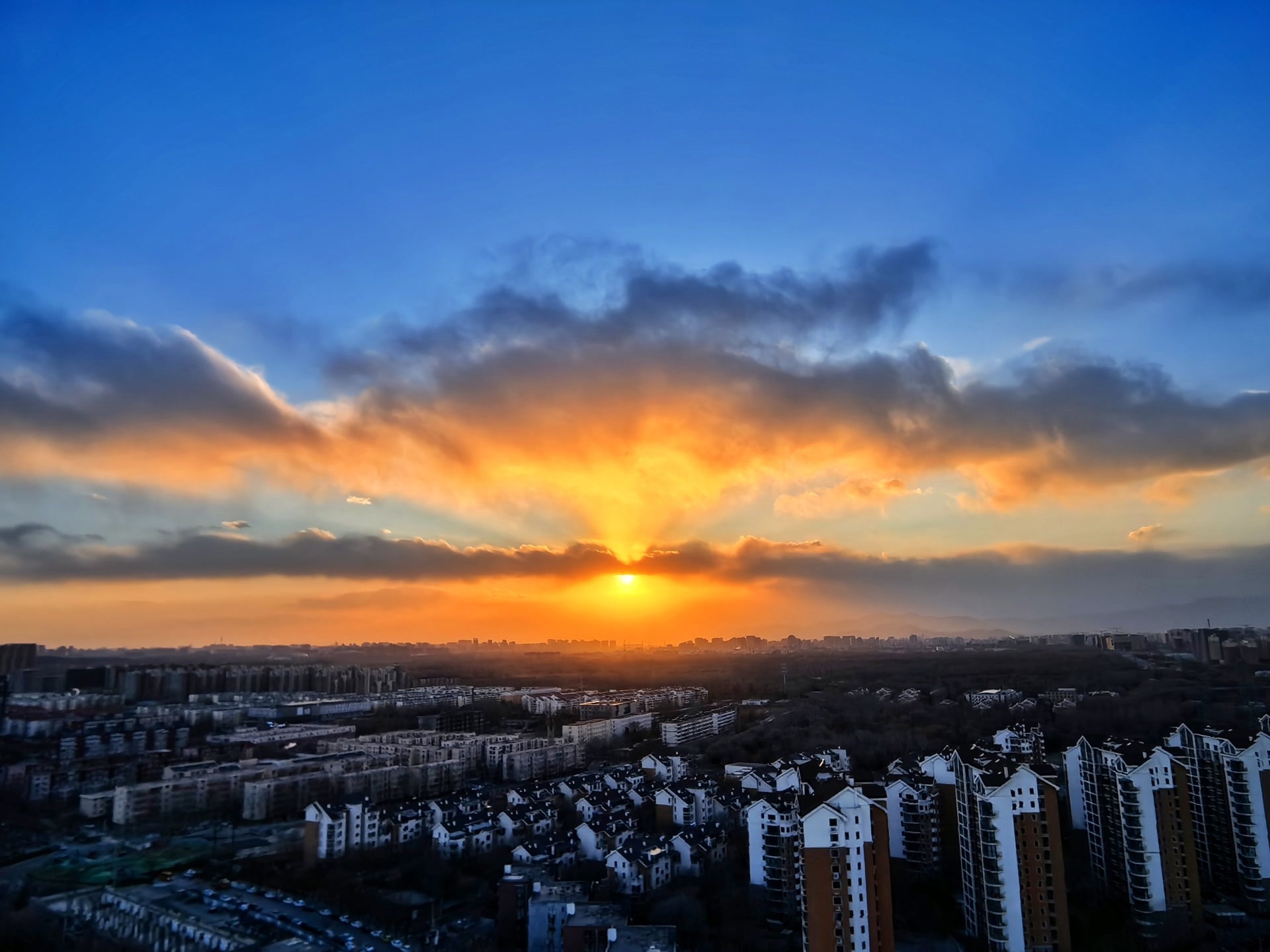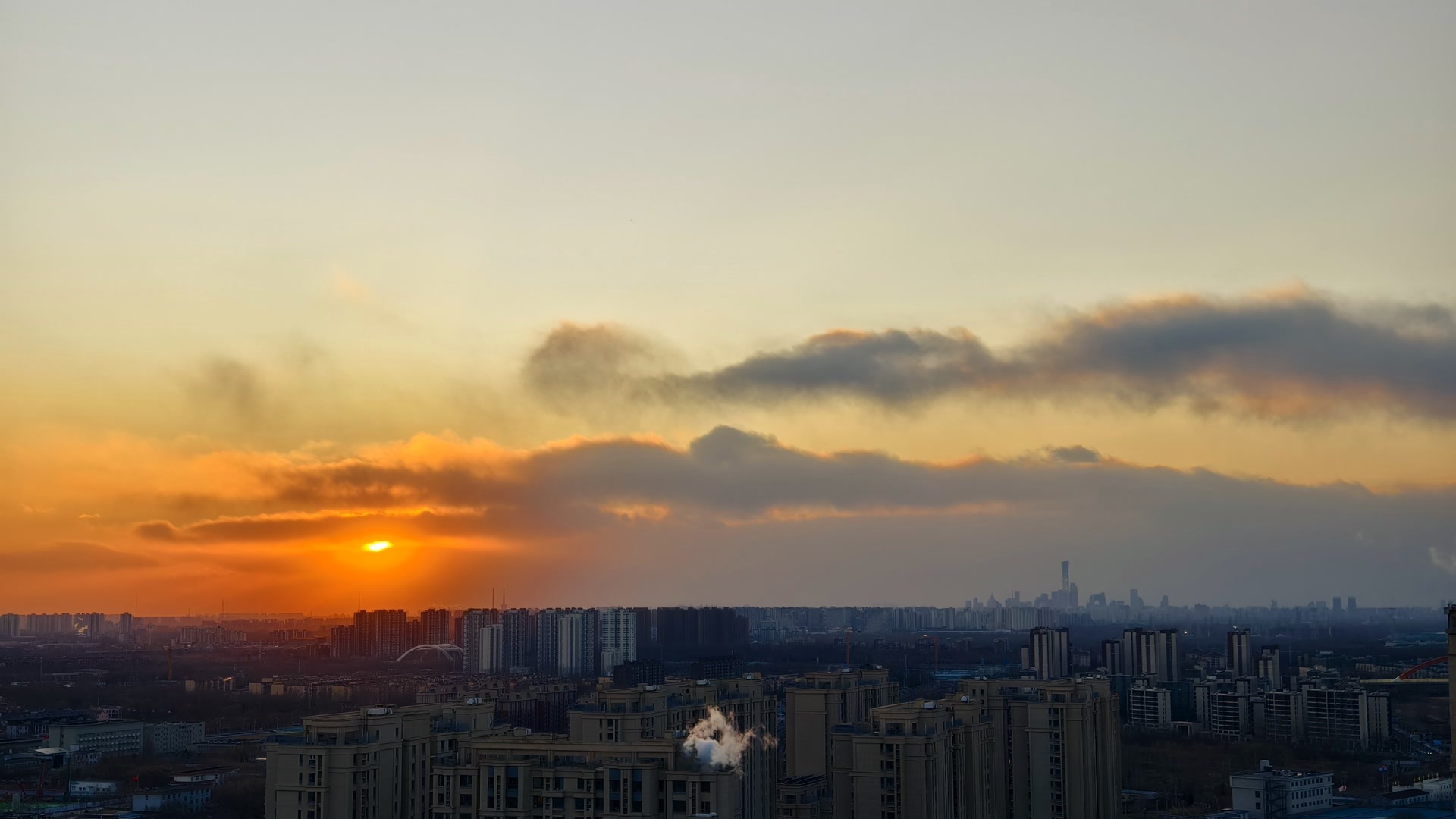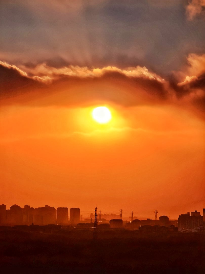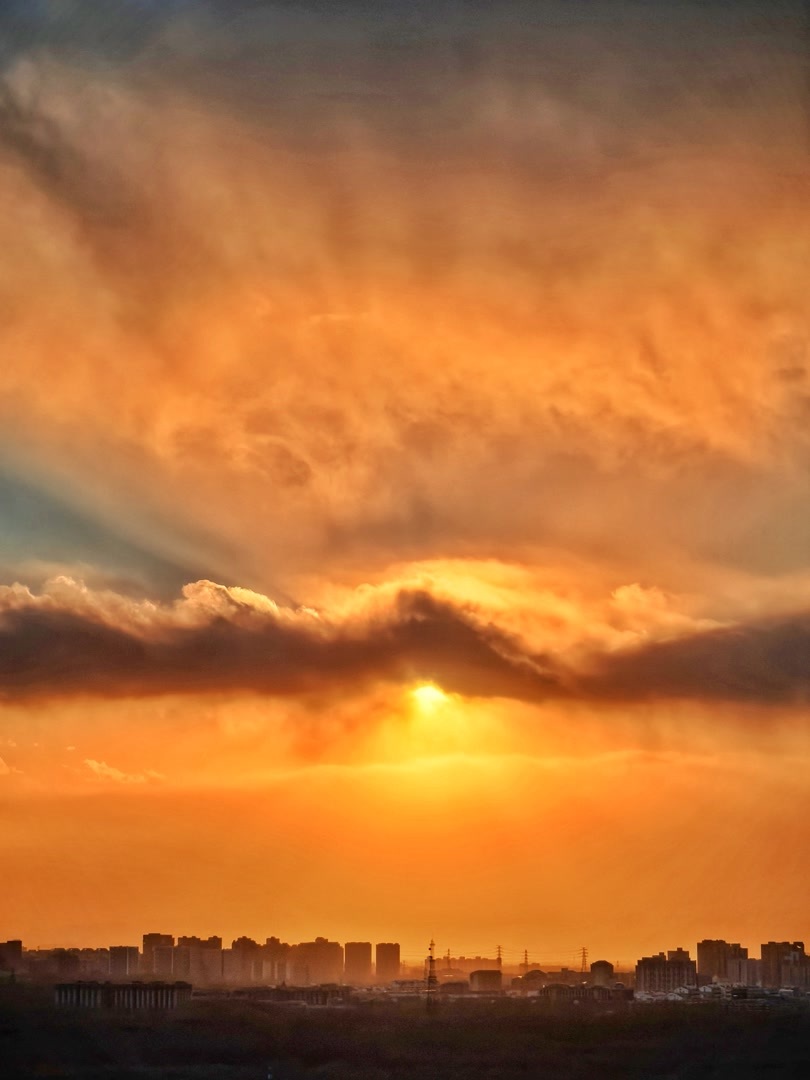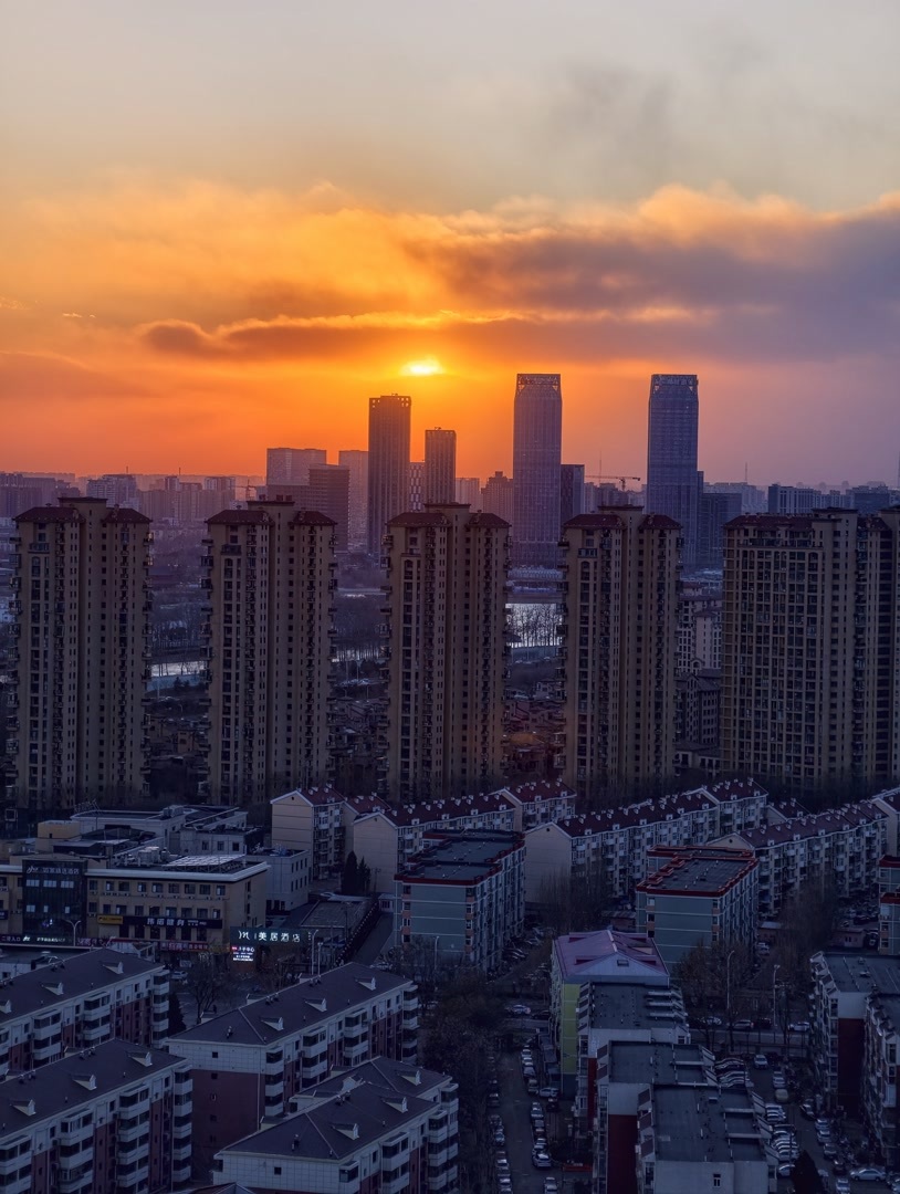 1月10日,在北京呼啸的大风里,夕阳缓缓下沉,绘就一幅绝美画卷。