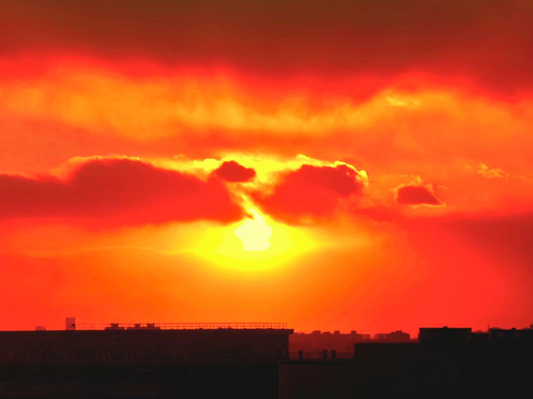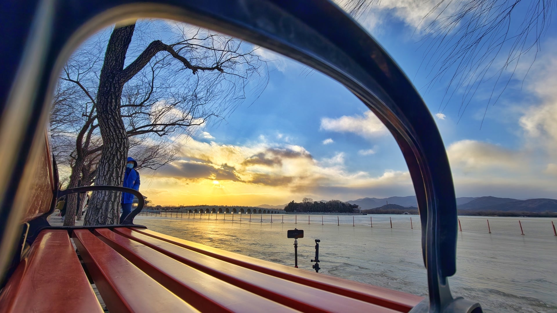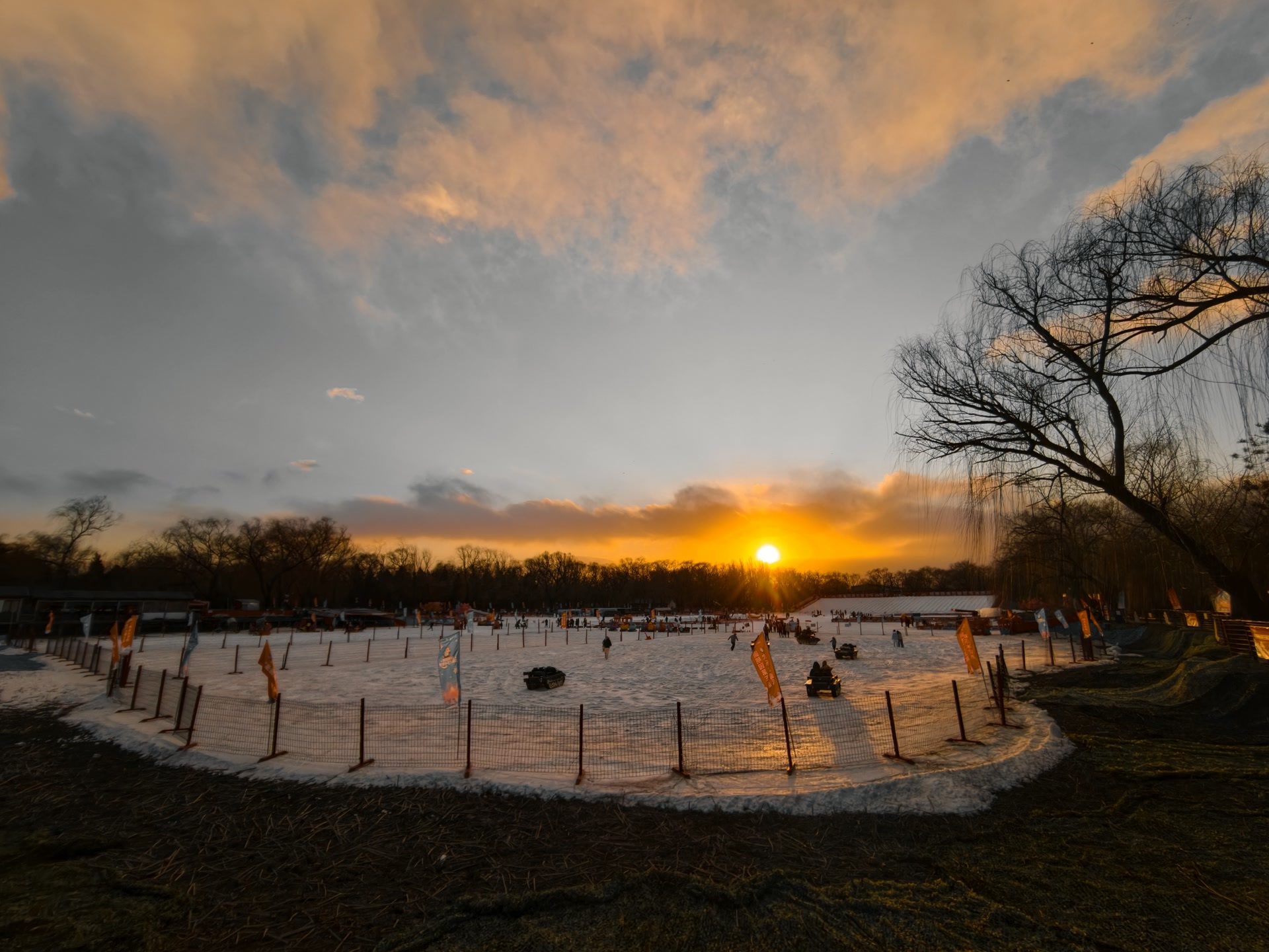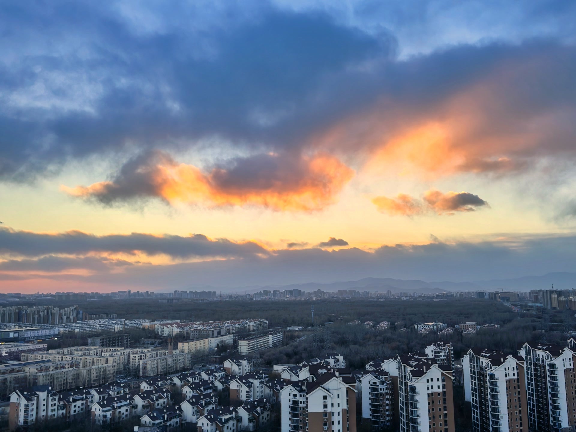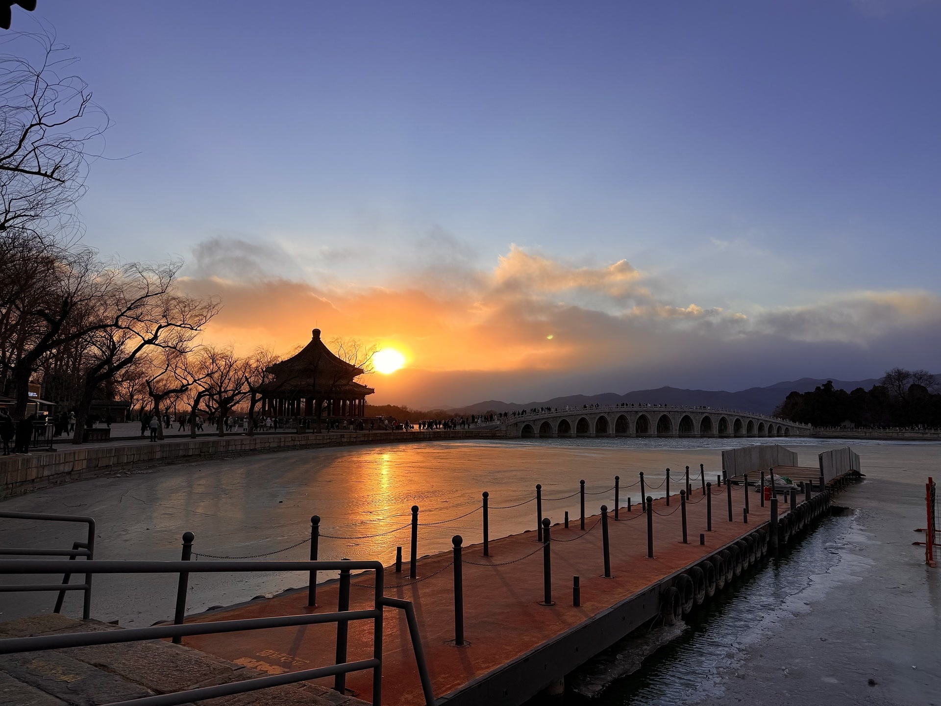 1月10日,在北京呼啸的大风里,夕阳缓缓下沉,绘就一幅绝美画卷。