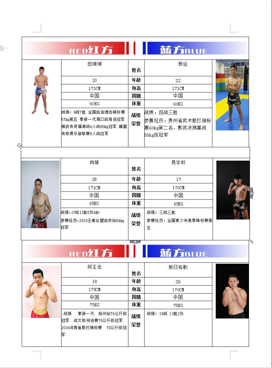 部分选手预览表: