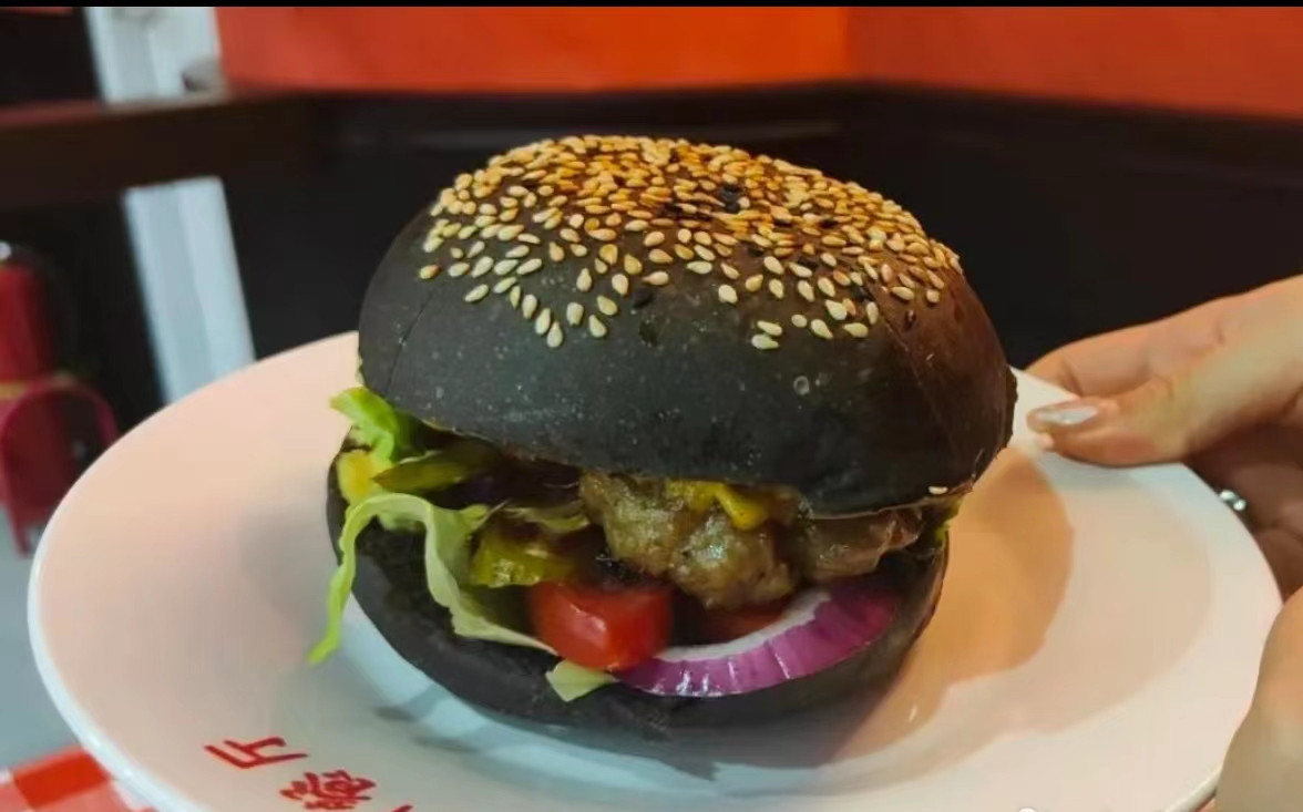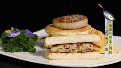 最后:将煎制好的馒头与洋葱牛肉饼层层叠加,形成汉堡的外形,一道营养美味的中式汉堡蛋牛治就出炉了~