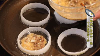 煎制:少量底油将锅润透,下入洋葱圈,然后将蛋液糊均匀舀入其中,煎至双面焦黄即可出锅。