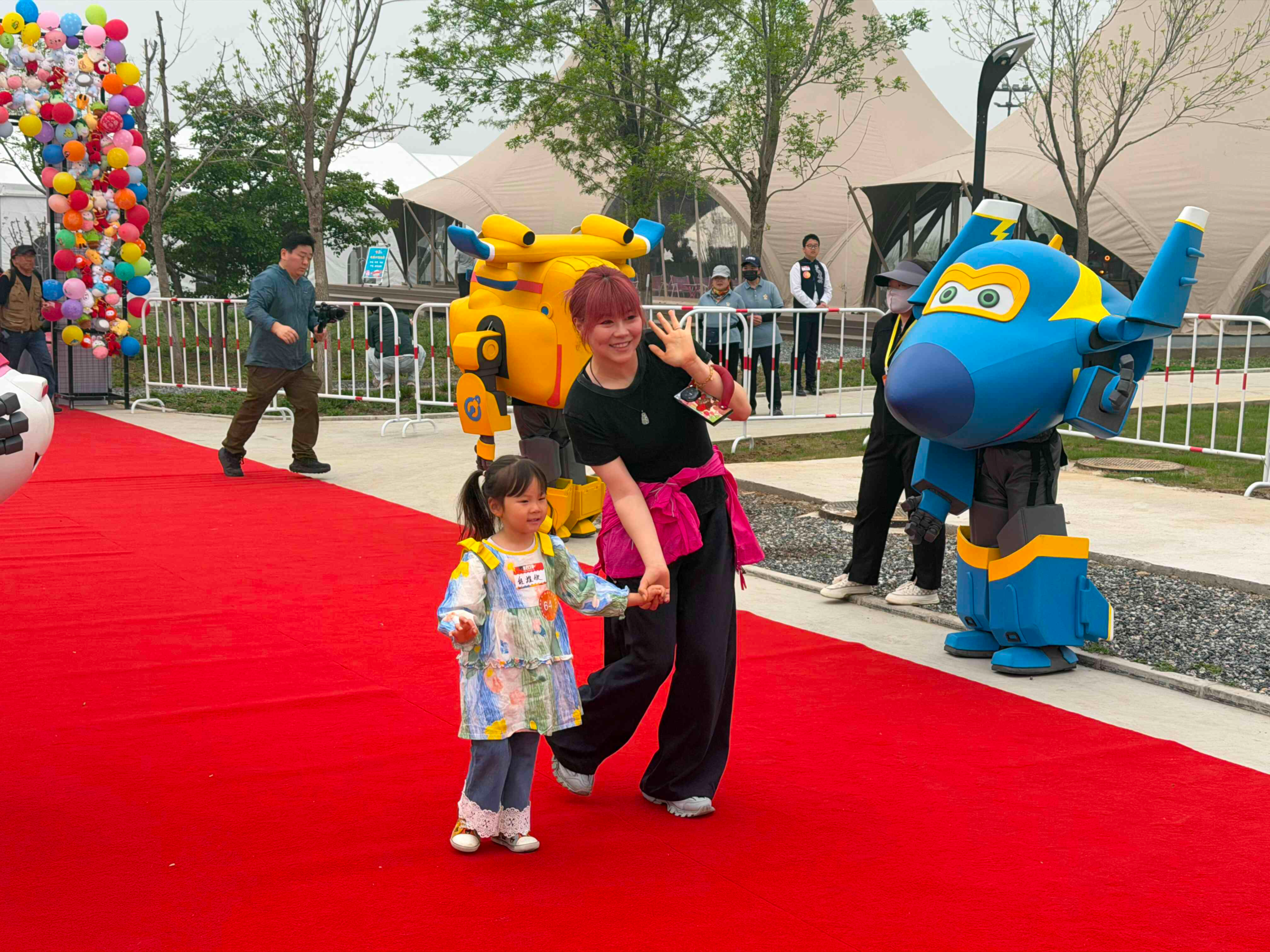 红毯环节结束后,家长和孩子们开启亲子畅游之旅。从红毯上的“小明星”到乐园里的快乐孩童,孩子们在游乐设施间奔跑嬉戏,完成了一次从“仪式感”到“松弛感”的自然过渡。现场还设置了趣味问答游戏区,孩子们争相作答,欢声笑语不断。“以往周末带孩子,要么纯玩,要么纯看演出,很少有把仪式活动和休闲游乐结合得这么自然的。”一位家长感叹道,“今天既圆了孩子的‘红毯梦’,又能顺便在郊外玩一天,大人孩子都不累。”