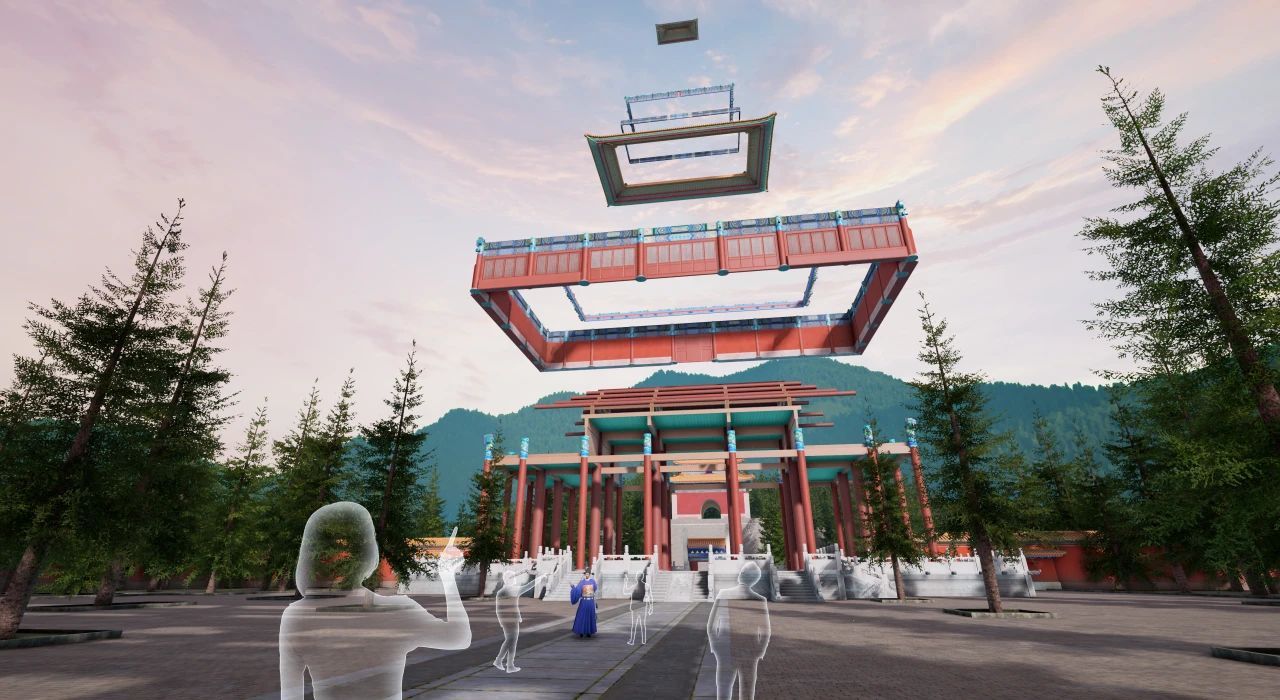 在权威专家的指导下,《明见万历》数字化复刻了金丝翼善冠、十二龙九凤冠、玉爵杯等明代国宝级文物。同时,参考史料记载,通过数字技术重现了明定陵祾恩门和祾恩殿等已经消失的明代建筑。这些文物和建筑的数字化呈现,让历史不再是冰冷的图片和文字,而是触手可及的“真实世界”。