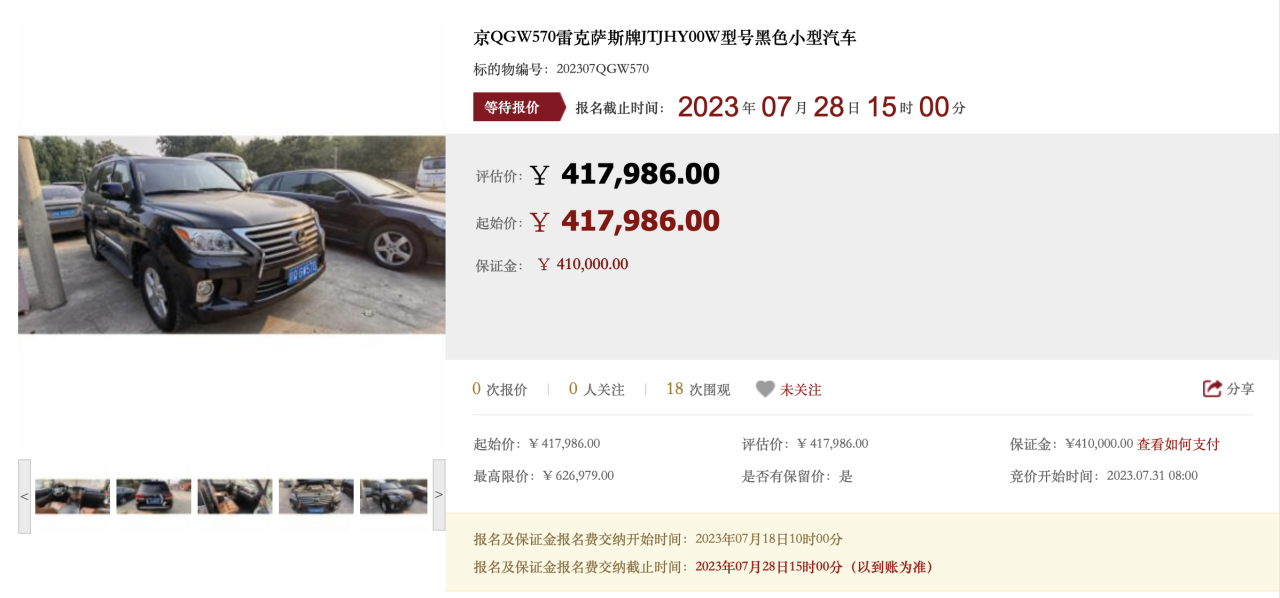 本期报名时间为7月18日10:00至7月28日15:00,7月30日公示报名信息,7月31日正式竞价。