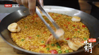 海鲜饭是西班牙国宝级的传统美食,起源于西班牙沿海城市瓦伦西亚,是以大米为原料,兔肉、鸡肉或者丰富的海鲜等做配料,加上高品质的藏红花,搭配蔬菜做成的饭类主食。它的西班牙名字翻译过来是平底锅的意思,所以海鲜饭都是连着锅一起端上桌的。