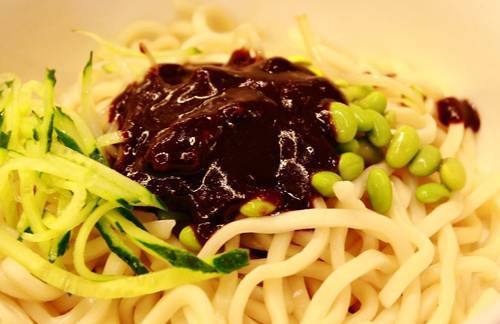 据推断,炸酱面可能就是从"灶温"的凉烂肉面发展而来的,直到上个世纪六十年代成形。当然,自己做一碗炸酱面也不是一件太难的事。黄豆清水泡发,入开水锅焯熟捞出。黄豆芽入锅焯熟。五花肉、鲜香菇洗净切成半厘米见方的小丁。心里美萝卜、白萝卜、黄瓜去皮切丝。芹菜、香椿洗净切小段。炒锅上火倒油烧热,放葱段、姜末、蒜末炒出香味,下五花肉丁中火煸炒,待逼出猪油,加一点料酒去腥,再加一些生抽炒匀,然后将肉丁盛出。
