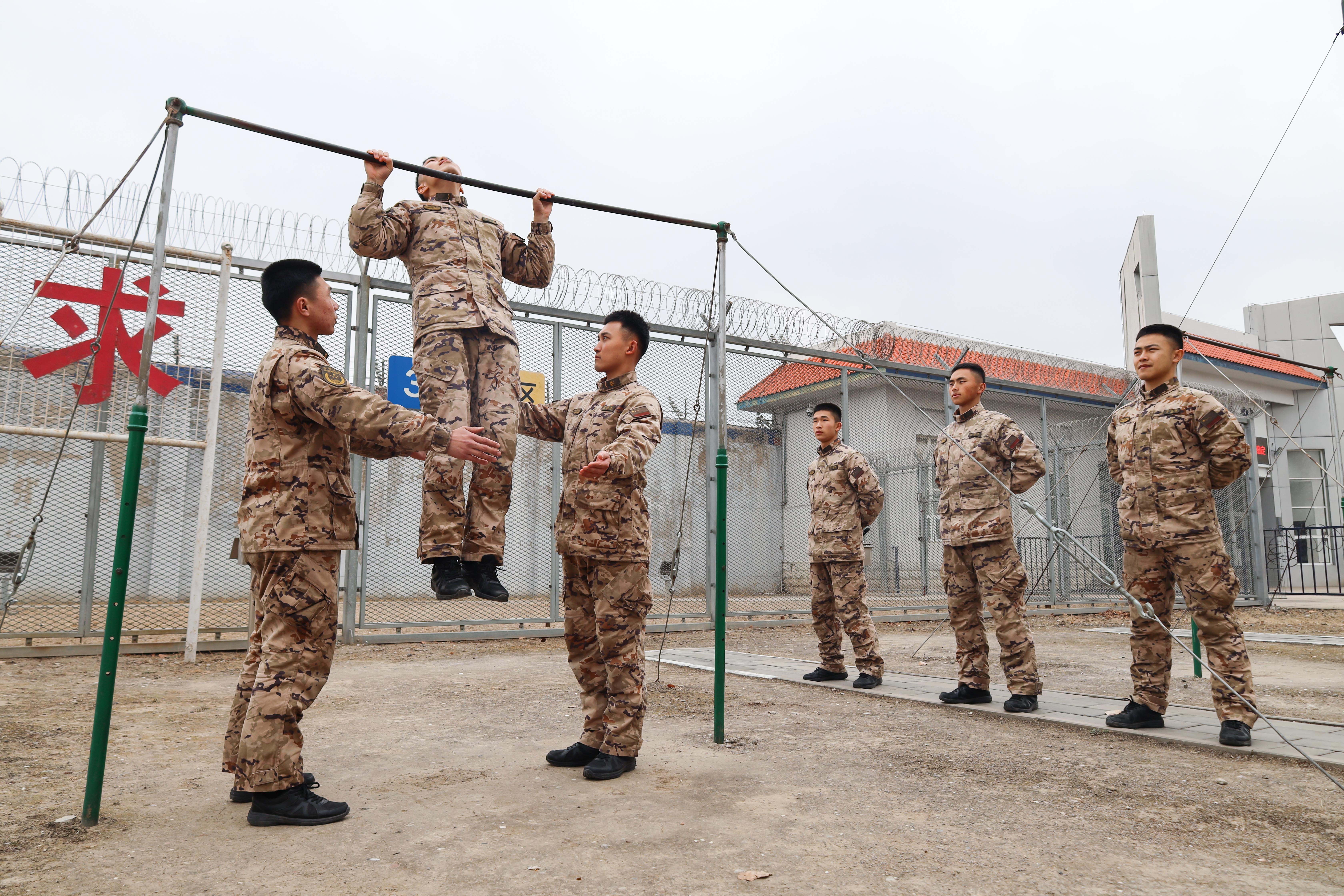 器械训练场上,黄源涛正指导新兵的动作要领,“来,肩胛骨下沉,感受将手肘往大腿上去找的发力感……”这话,他曾无数次对胡勇说过,新兵时两人练器械总卡壳,便互相纠正、彼此鼓劲,从磕磕绊绊到成为中队的器械尖子,掌心的厚茧磨了一层又一层,也磨出了最默契的战友情。
