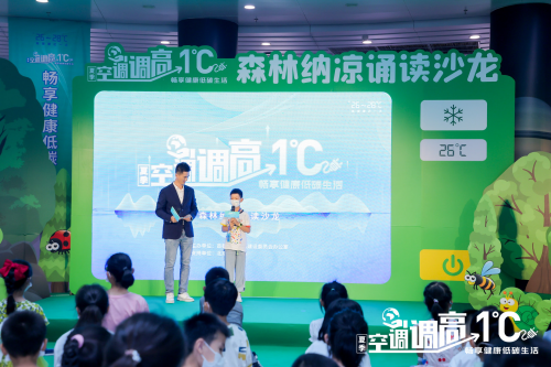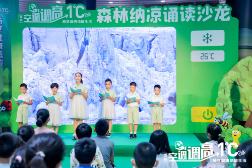 活动在沉浸感极强的音诗画朗诵节目《调高一度 留给未来一个“绿正浓”》中开场,“琅琅的书声在浓夏中渐起,地球的生态画卷也徐徐展开……”告诉公众践行绿色低碳节能行动对保护地球生态环境的长远意义和影响,“让我们行动起来,用26度的夏天,留给未来‘绿更浓’‘花更艳’‘水更清’‘天更蓝’。”小演员们的倾情呼吁,引发了现场公众的深思。
