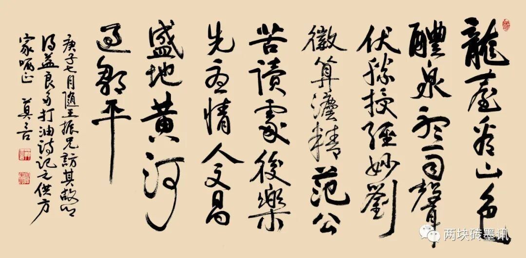 我和王振深感艺术之魅力,书法之有用,遂商定申请一公号,名“两块砖墨讯”,以此为平台与书友文朋通声气。 ———莫言