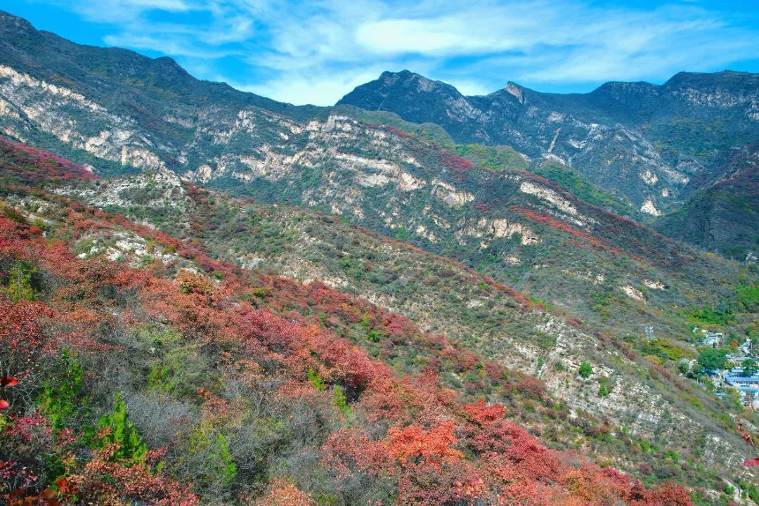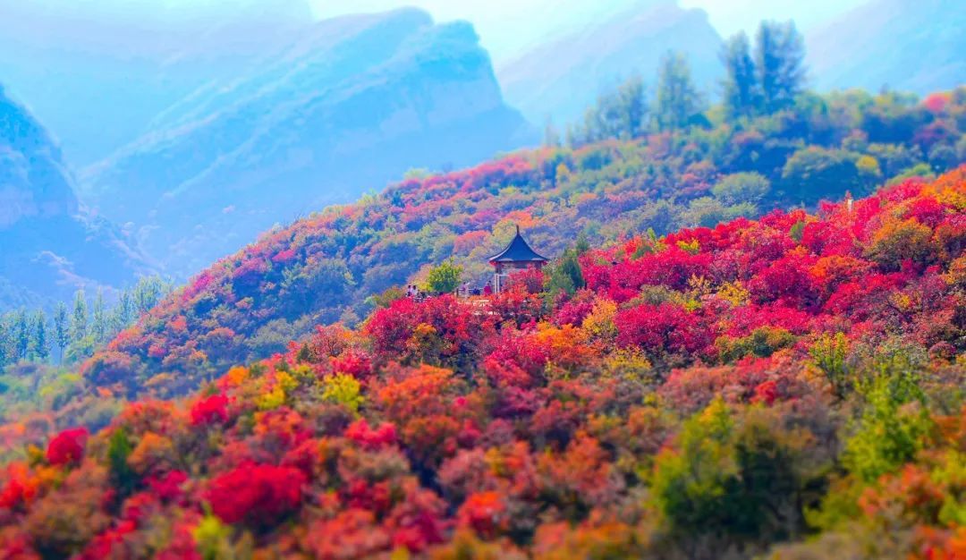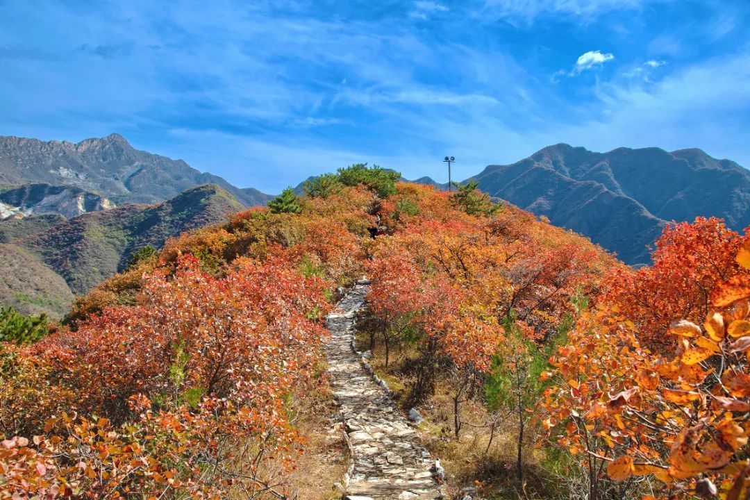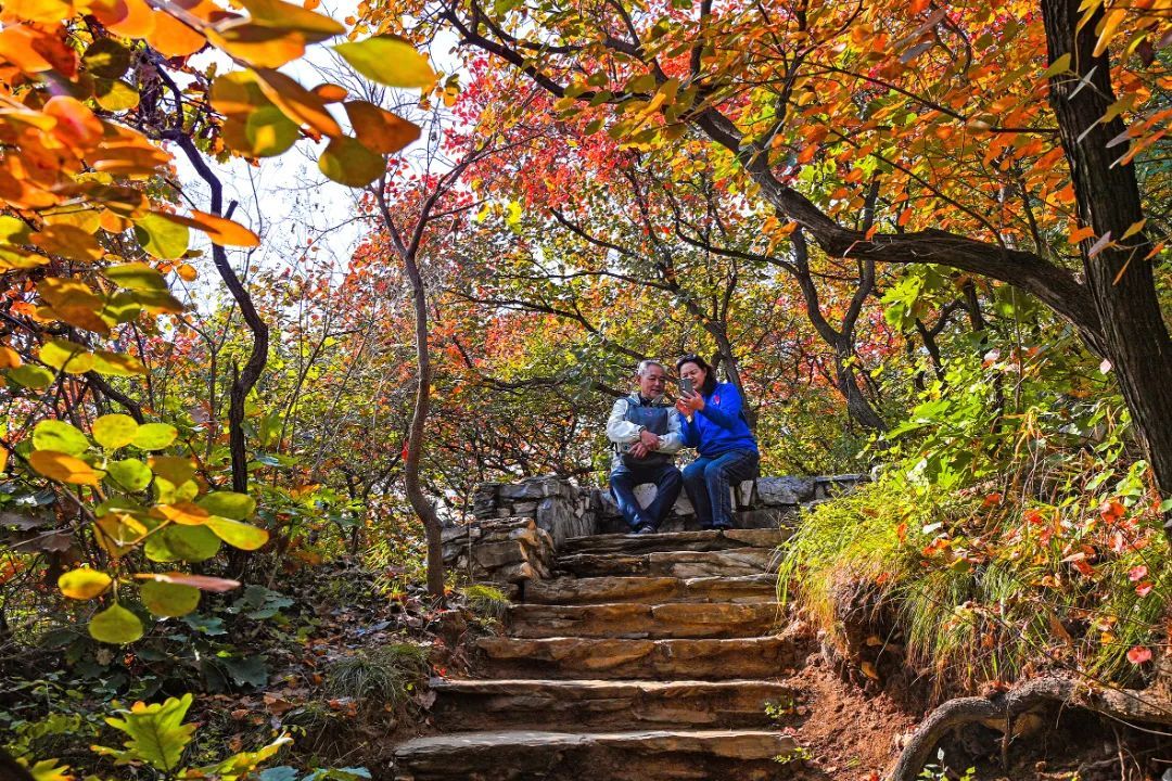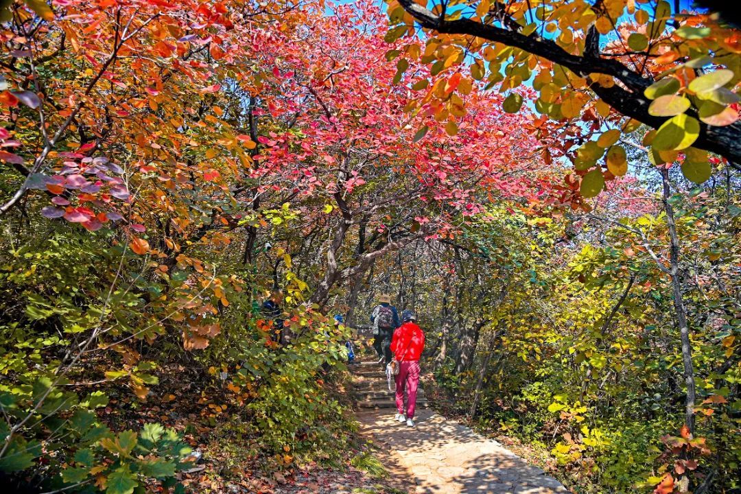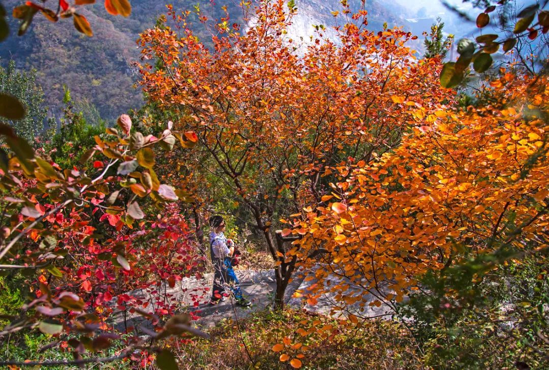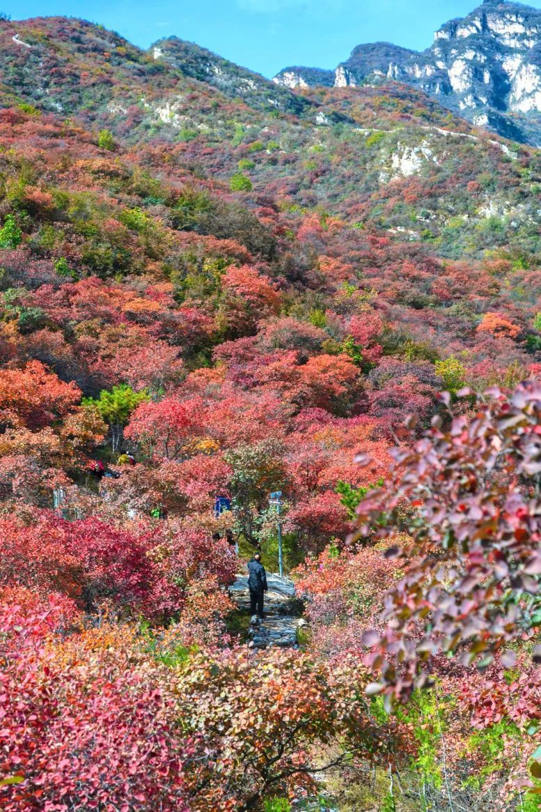 霜降时节,秋天的颜色更加浓烈,周口店镇的坡峰岭景区和药王谷风景区宛如被大自然打翻的调色盘,一场盛大而热烈的红叶之舞正在悄然上演。