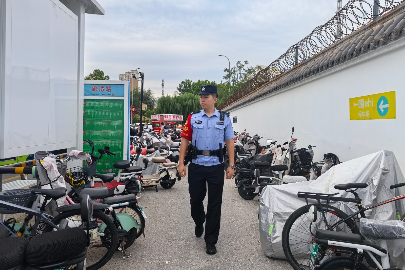 为确保“非机动车代管”举措落地见效,廊坊站派出所结合管内客流规律,构建“数据支撑、警力联动、宣传引导”三位一体工作机制。在客流分析上,通过梳理近3年暑期旅客出行数据,明确早晚高峰重点时段,同步锁定站前路、广场东侧、公交接驳站附近3处集中临时停放区为重点防控区域。在警力部署上,实行“固定巡逻+便衣巡视+视频巡控”多重防控模式,组织3名警力设立固定巡逻组,定时对停放区开展一次逐车检查,发现未锁、未拔钥匙车辆立即登记并转移至派出所代管区,2名便衣警力采取“错峰巡视+重点蹲守”策略,重点关注徘徊观察、多次触摸车辆锁具的可疑人员。