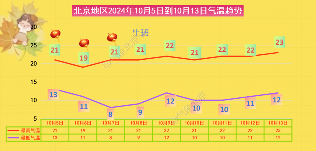 未来两天云量逐渐增多,还会出现小雨天气,预计10月5日夜间降雨主要出现在西部北部地区,到了6日会逐渐扩展至全市,受此影响,6日最高气温小幅下降,预计在19℃,阴冷感觉更明显,如果有外出计划,请携带雨具,注意添衣。
