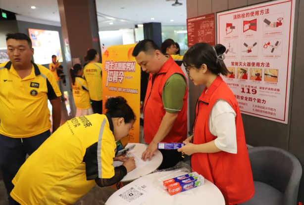现场,工作人员还对“暖阳”骑士志愿服务队进行了招募。据了解,该服务队是邀请快递、外卖骑手等新就业群体助力社会治理的“新”力量。现场,部分未加入服务队的外卖骑手在听取工作人员的介绍后,领取手册并主动扫码加入。截至目前,注册人数已达90余人。