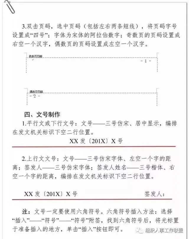 一般用4号半角宋体阿拉伯数字,编排在公文版心下边缘之下,数字左右各放一条一字线;一字线上距版心下边缘7 mm。单页码居右空一字,双页码居左空一字。公文的版记页前有空白页的,空白页和版记页均不编排页码。公文的附件与正文一起装订时,页码应当连续编排。