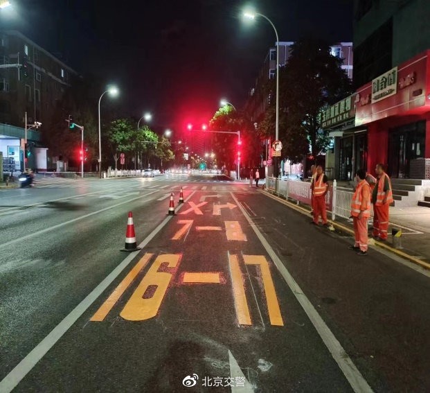 西城交通支队在二龙路安装“前方学校”新国标警示标志、施划地面减速标线“前方学校”提示文字,同时对周边停车位和交通流线进行优化;