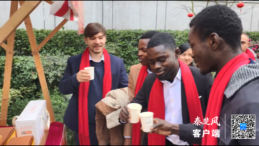 新春集会上,展示了房县黄酒、十堰文创等本土特色文化与民俗好物,外籍友人们驻足品尝,感受十堰味道。