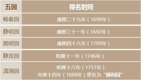 小知识“五园”问世时间表