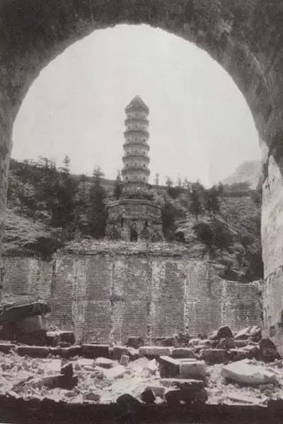 静宜园琉璃塔下被焚后的废墟