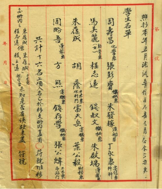 1947年上海淞沪警备司令部政工处开列的拘捕学生名单,里面胡荫即胡晓槐