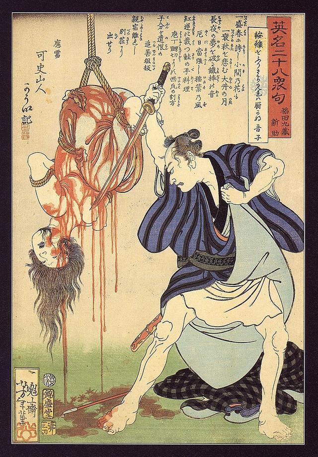 物之极致即是美,这是所有日本艺术人的美学观点,因为有这样的观点,才在日本这个奇特的岛国衍生出许多美丽的恶之花浮世绘江户时代流行一种绘画艺术风格,本来的意思是以此浮世之中的事物为主题的绘画,题材不一而足主题为鬼怪杀人场景的画作就叫作无惨...
