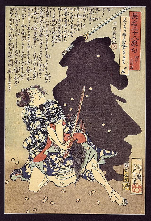 庆应2年(1866年)12月至庆应3年(1867年)6月,歌川国芳门下两位最出色的弟子月冈芳年和落合芳几相约以所谓“究极”浮世绘的手法表现歌舞伎惨剧中的情节,题名《英名二十八众句》,每人各画十四图,并以此作为竞争目标。