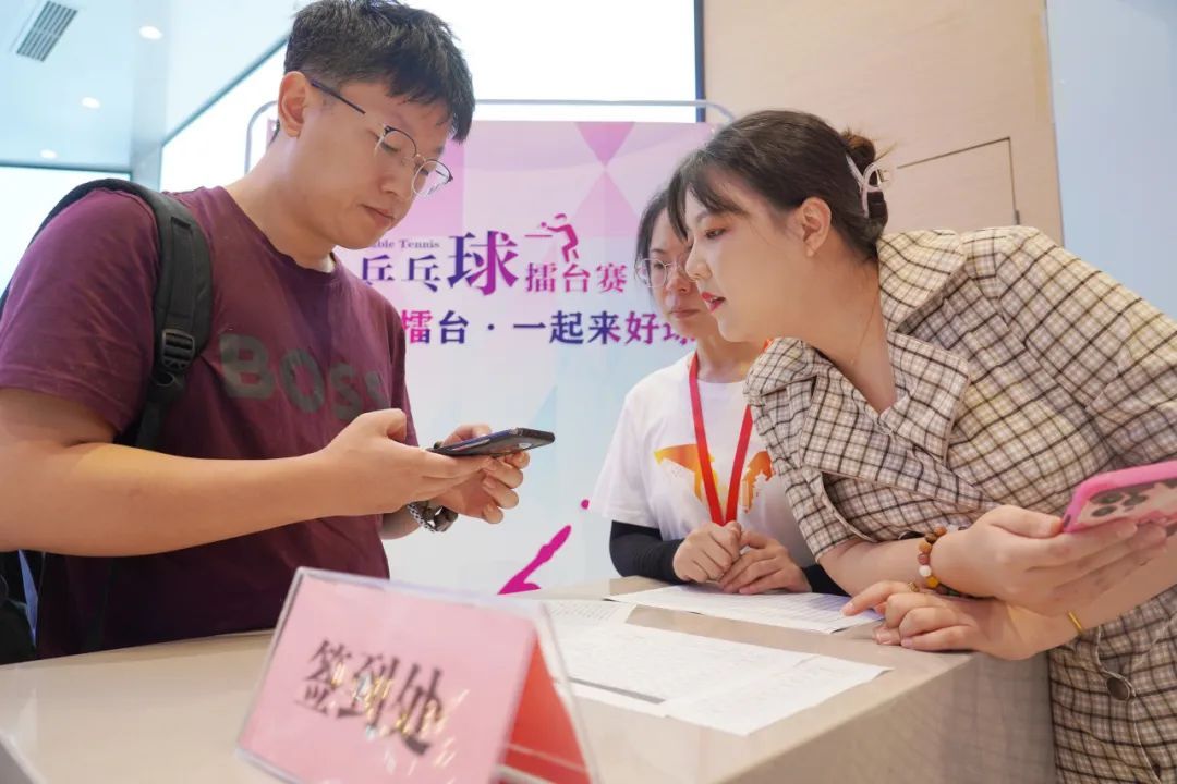 8月31日至10月6日,在六工汇下沉广场还开设乒乓球趣味活动体验区,市民可参加发球机对战、乒乓球接龙赛、颠球比赛、“盲盒搭子”双打比赛等科技感和互动感十足的趣味比赛,更有机会得到专业乒乓球手的技术指导,从而快速提升自己的球技。