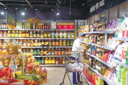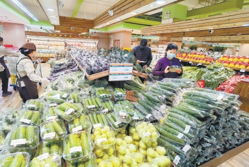 超市发双榆树店各种商品货源充足,顾客和往常一样秩序井然。北京晚报记者王海欣 摄