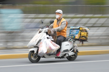 外卖快递配送不停歇,奔波在京城的大街小巷,配送着市民订购的物资。 北京晚报记者 刘平 摄