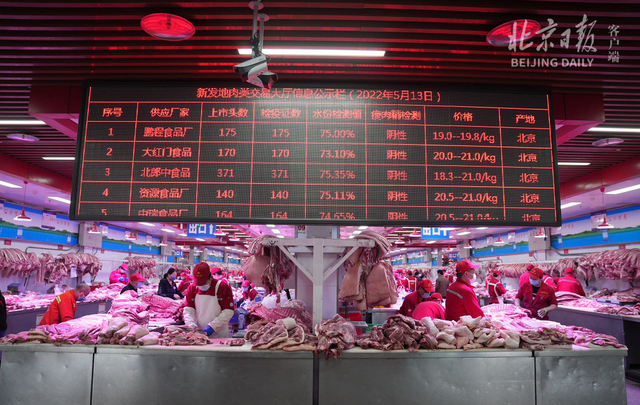 在北京新发地农产品批发市场猪肉批发大厅,刷一次身份证就可以完成扫码登记、核酸检测结果查询等功能,极大地提高了进门速度,减少聚集风险。今天新发地市场猪肉上市量达到1824头,批发价为18.3至21元每公斤,平均价格为19.5元每公斤。