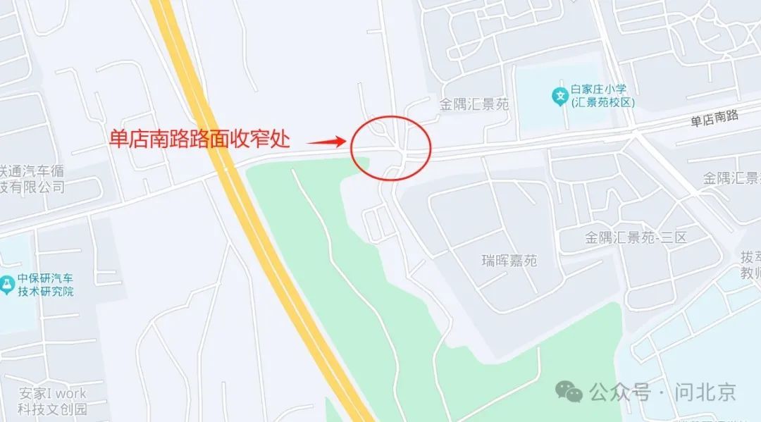 单店西路何时才能打通呢?记者也将问题反馈给单店西路南端所属的平房乡政府,记者发稿前,平房乡城乡建设办公室进行了文字回复:1、拔萃学校宿舍楼建成年代早于现状单店西路,按照现状规划,拔萃学校部分宿舍楼位于未实施规划的单店西路道路规划红线内。2、单店西路南延后将与姚家园北街联通,但目前未纳入区交通委道路实施计划,没有道路建设主体。