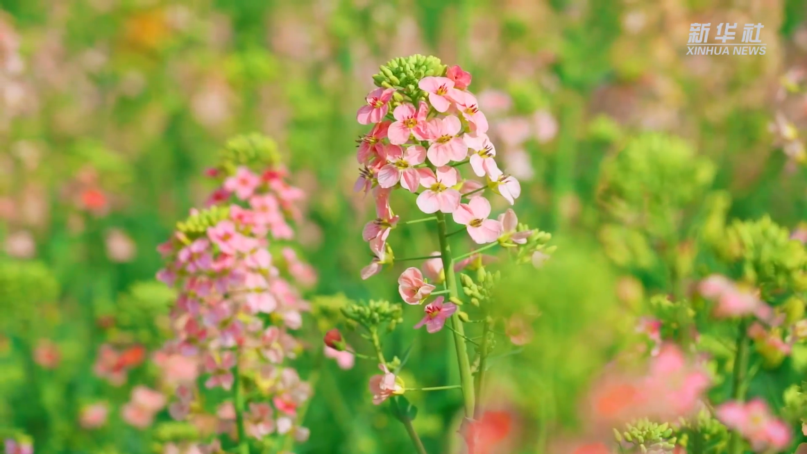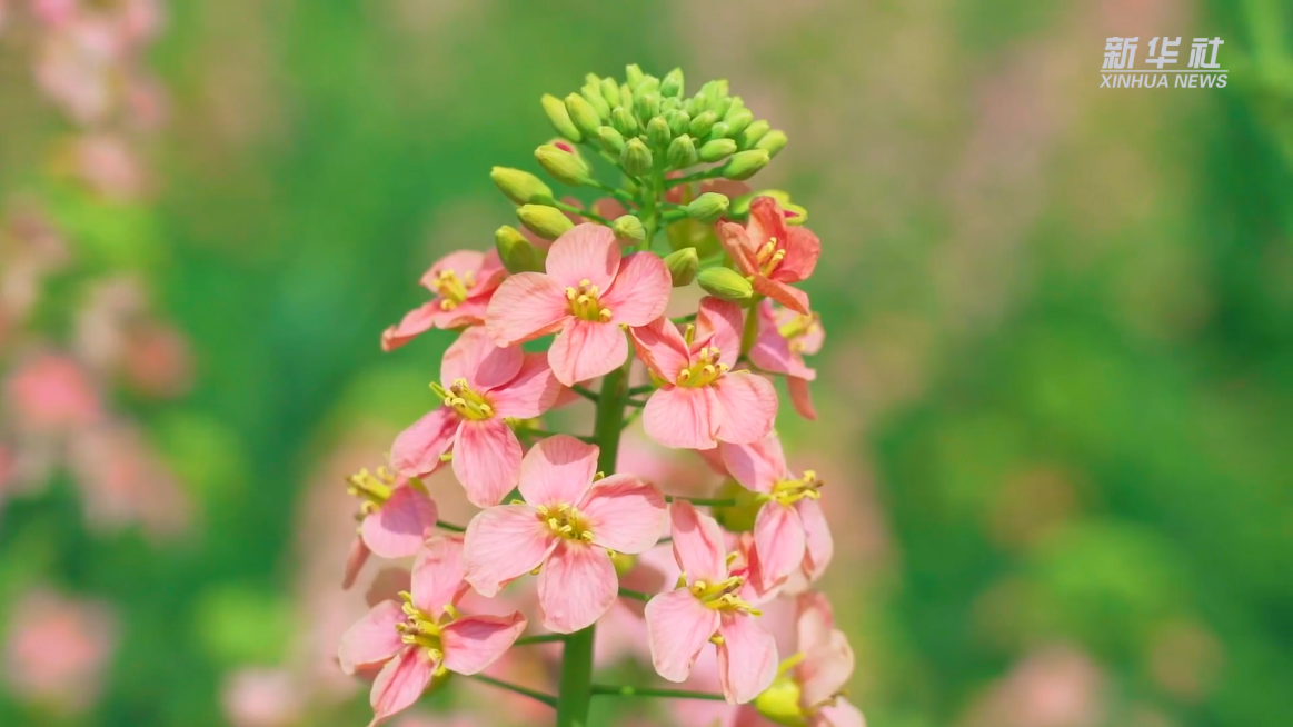 据了解,这些彩色油菜花是采用将油菜花粉与白菜花、萝卜花、甘蓝花等有颜色的优良材料进行杂交、回交、自交等多种选育方法,使不同花色基因重新组合,促使油菜花的花色和种类不断更新。
