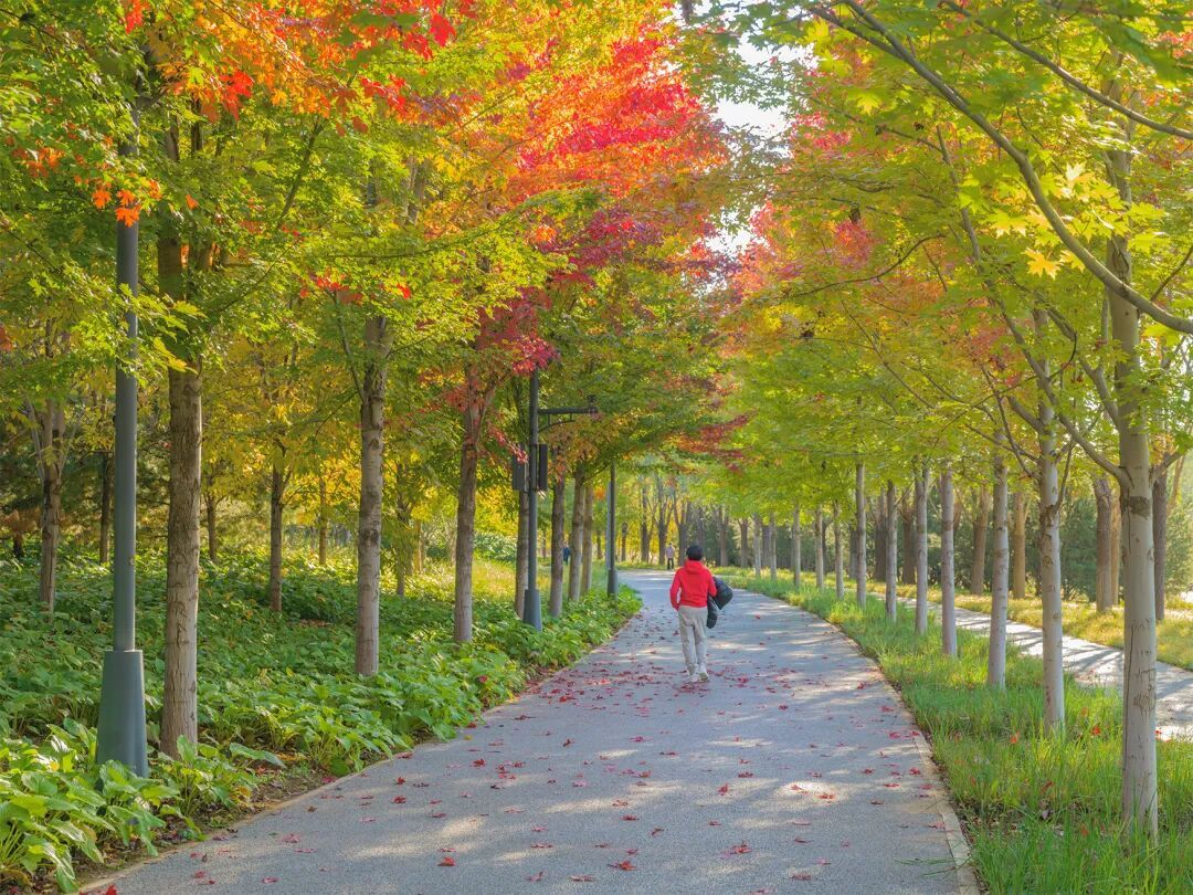 红得热烈、橙得明媚,还有黄绿交织的过渡色,层层叠叠晕染开。抬头看,蓬松的白云下,成片的粉黛乱子草如烟如霞,微风拂过,荡起一层层柔波。秋天的京城就像一个彩色多巴胺画盘,缤纷又绚烂。