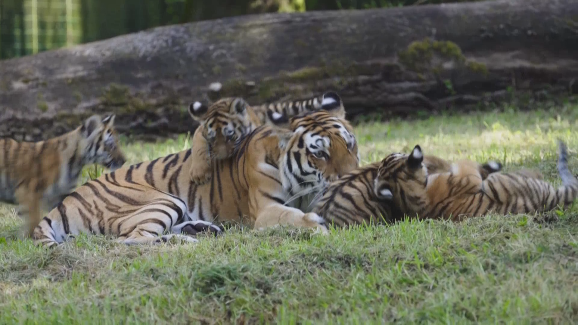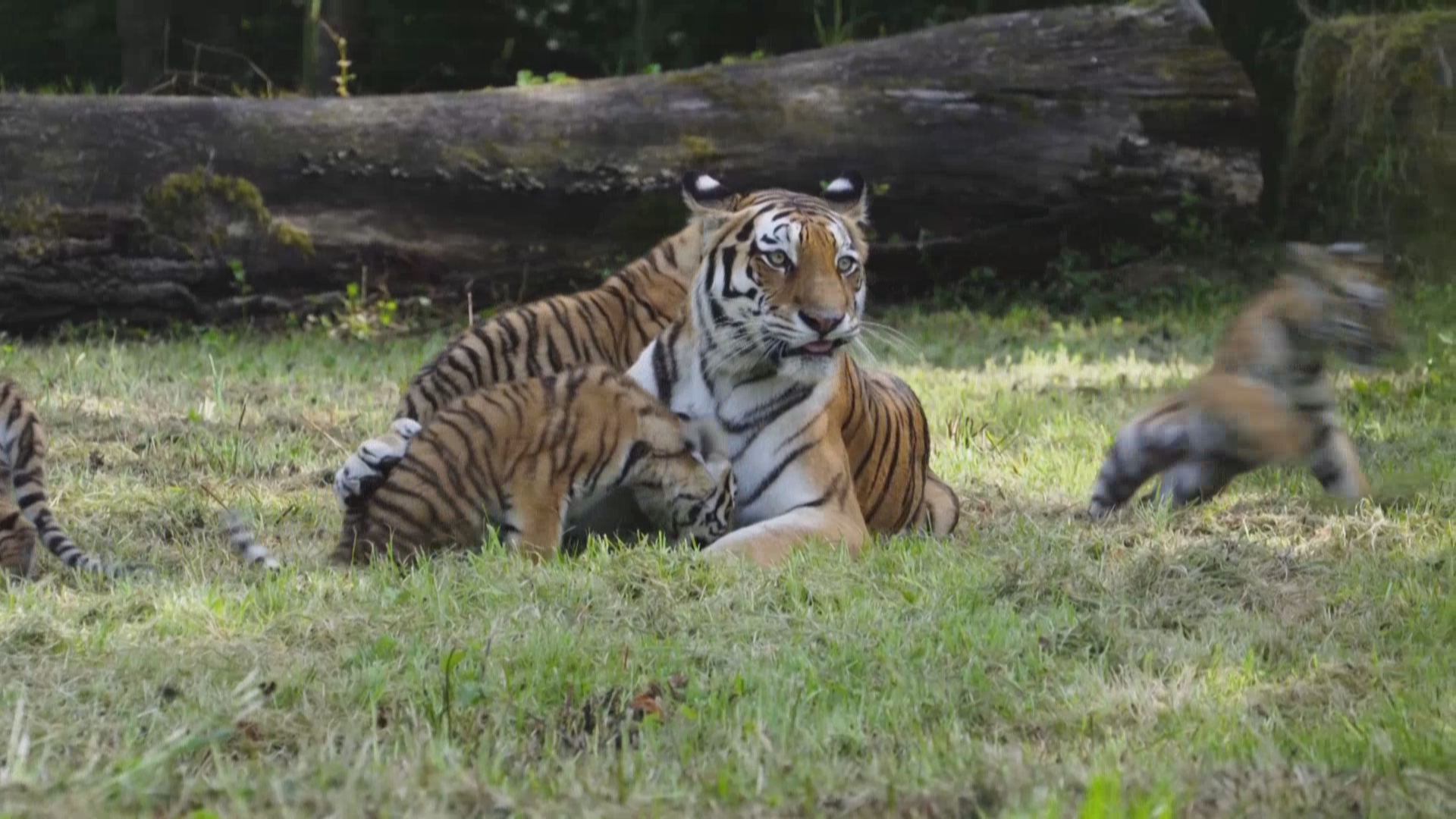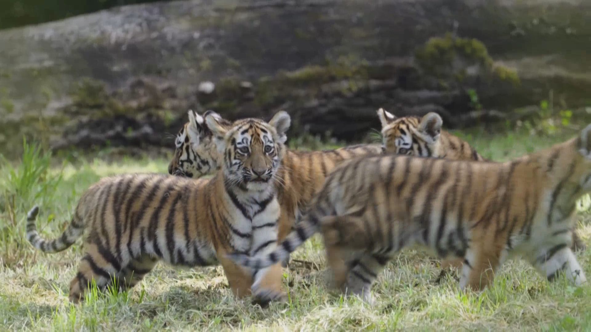 今年5月,位于英国威尔特郡的朗利特野生动物园迎来了四只东北虎幼崽。近日,动物园在社交媒体上分享了小家伙们的近况,它们已经开始跟着妈妈来到户外活动了。