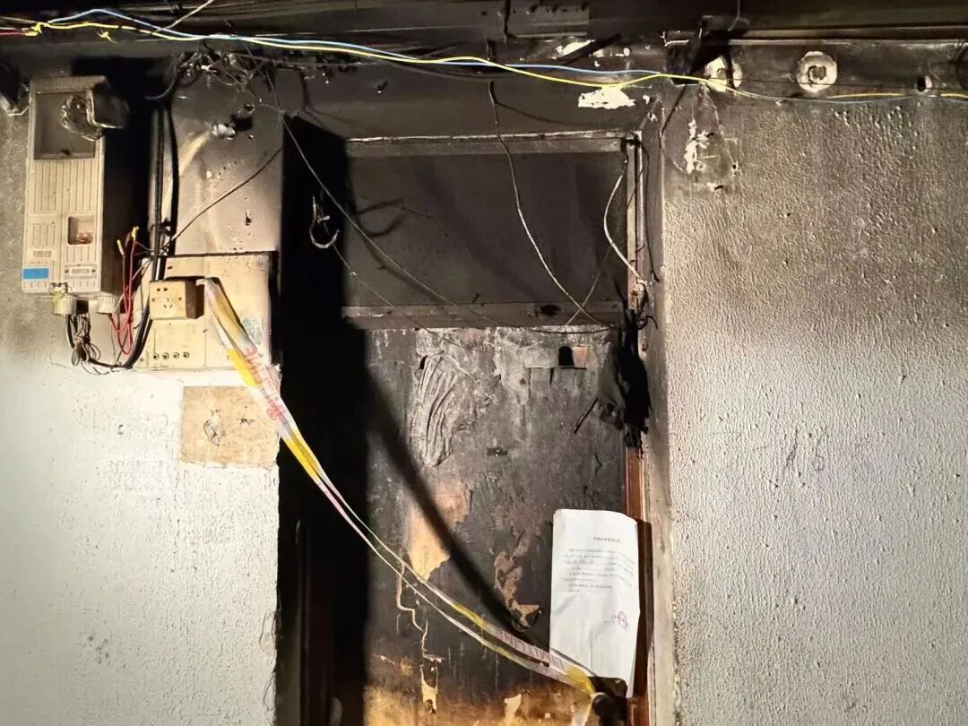 近日,记者来到事发楼层,楼道内仍残留很重的烟熏痕迹及气味,过火的房门已被烧黑。目前,火灾原因正在进一步调查中。
