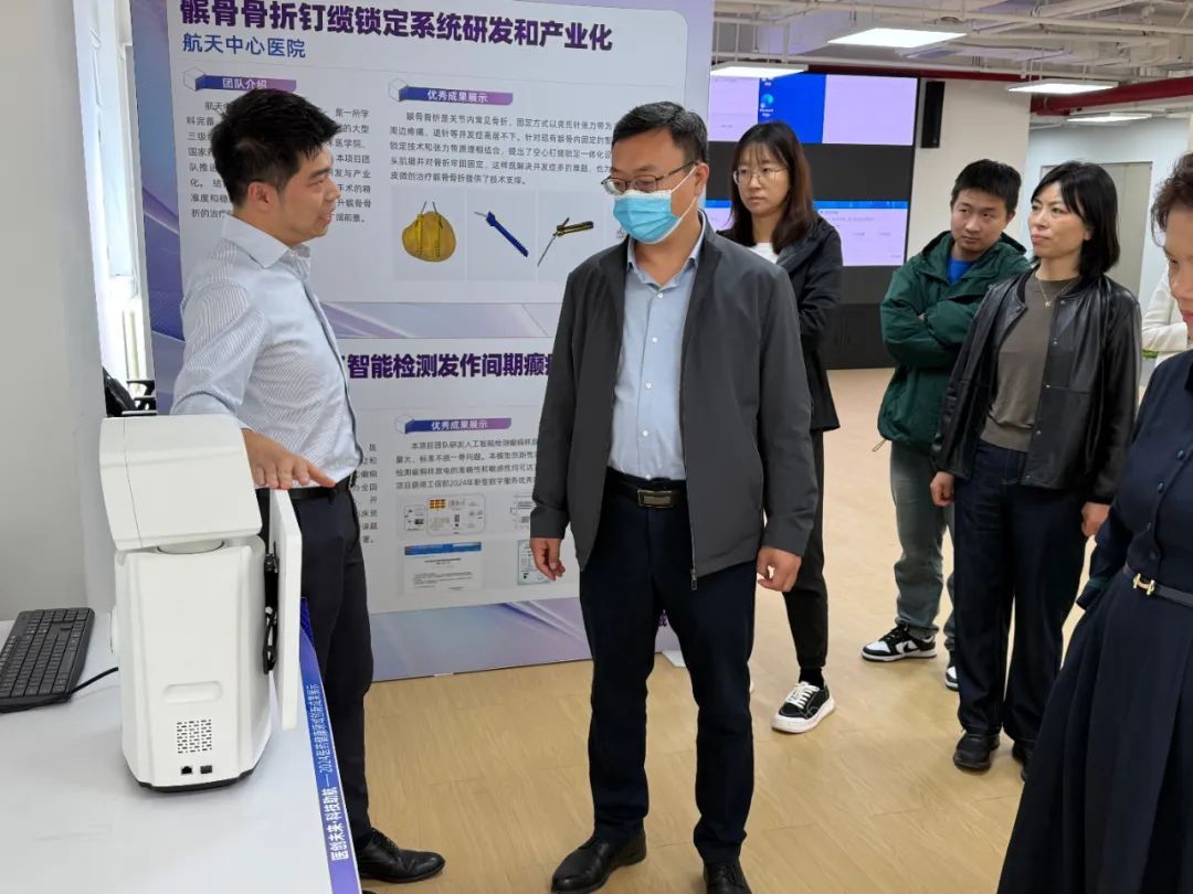 展览过程中,北京市科协相关负责人带领与会单位参观了解街道企业医药健康领域创新成果,参会单位认真观看各项成果演示,对部分医疗设备成果现场深入体验,并与街道企业积极互动对接。