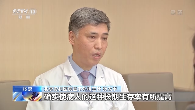 北京协和医院基本外科主任 张太平:对于暂时不能手术的病人,采取新辅助治疗的方式,确实是病人的这种长期生存率有所提高,到目前为止,基本上胰腺癌5年生存率,按国际上最新的报道,已经达到了10%左右,这是一个非常了不起的进步。