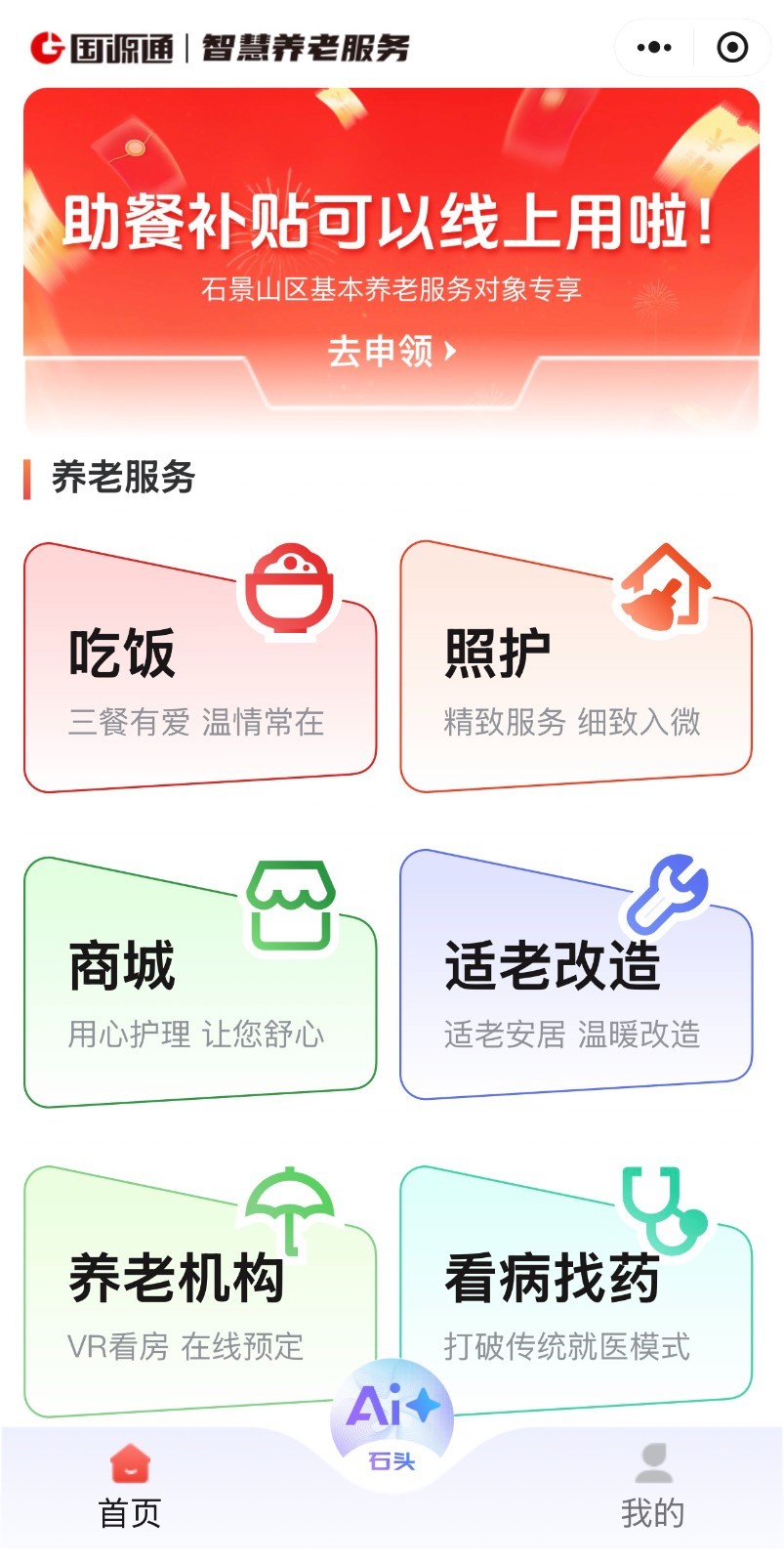 设置助餐、照护、机构养老、适老化改造、看病找药、福利申领等8项实用功能