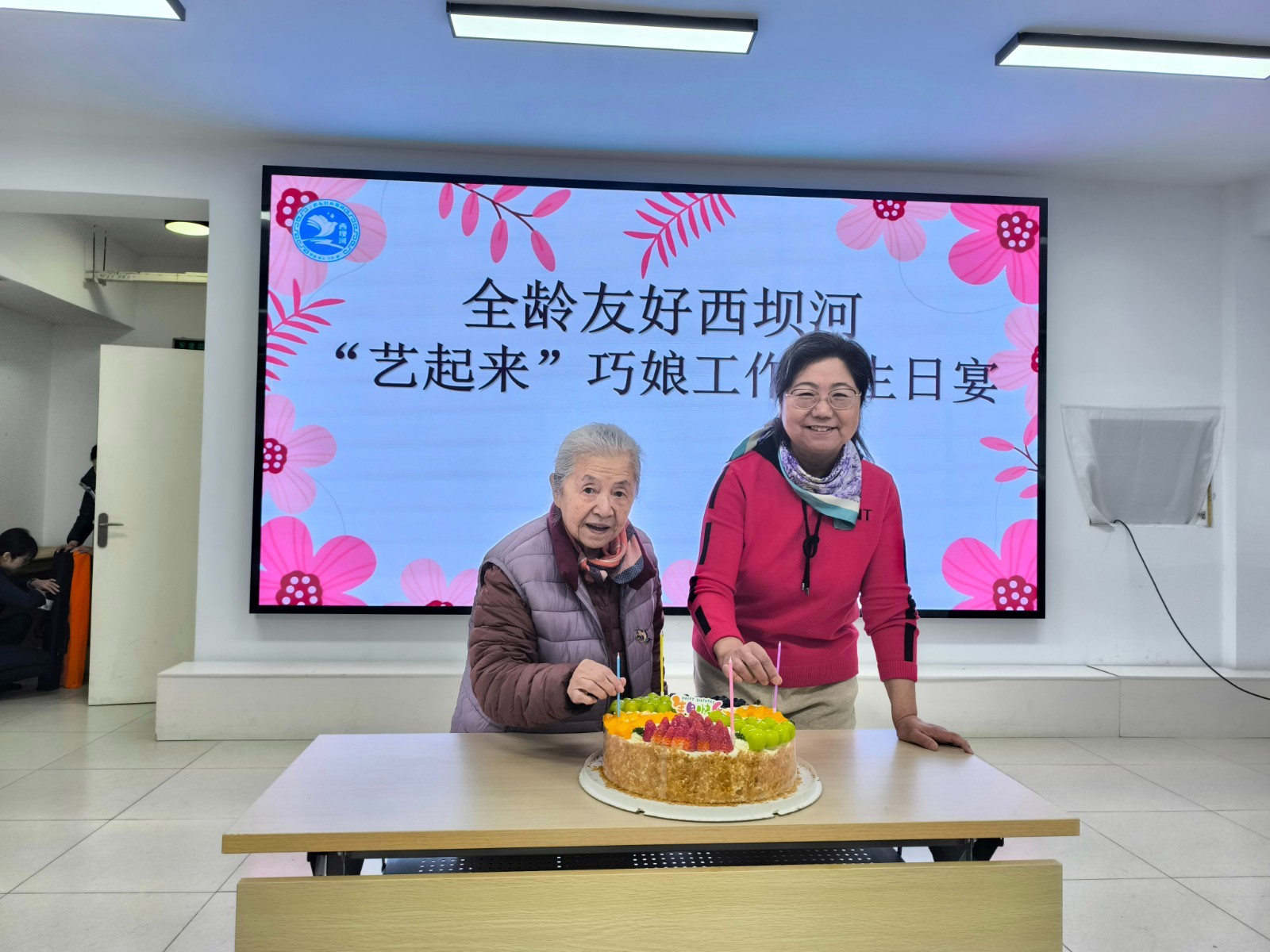 恰逢3月8日巧娘工作室成立四周年,现场设置专属庆生环节。工作室成员与居民代表齐聚,点燃蜡烛、分享蛋糕,回顾四年来从手工兴趣小组到社区特色服务组织的成长历程,见证女性以手为媒、传递温暖的巾帼风采。