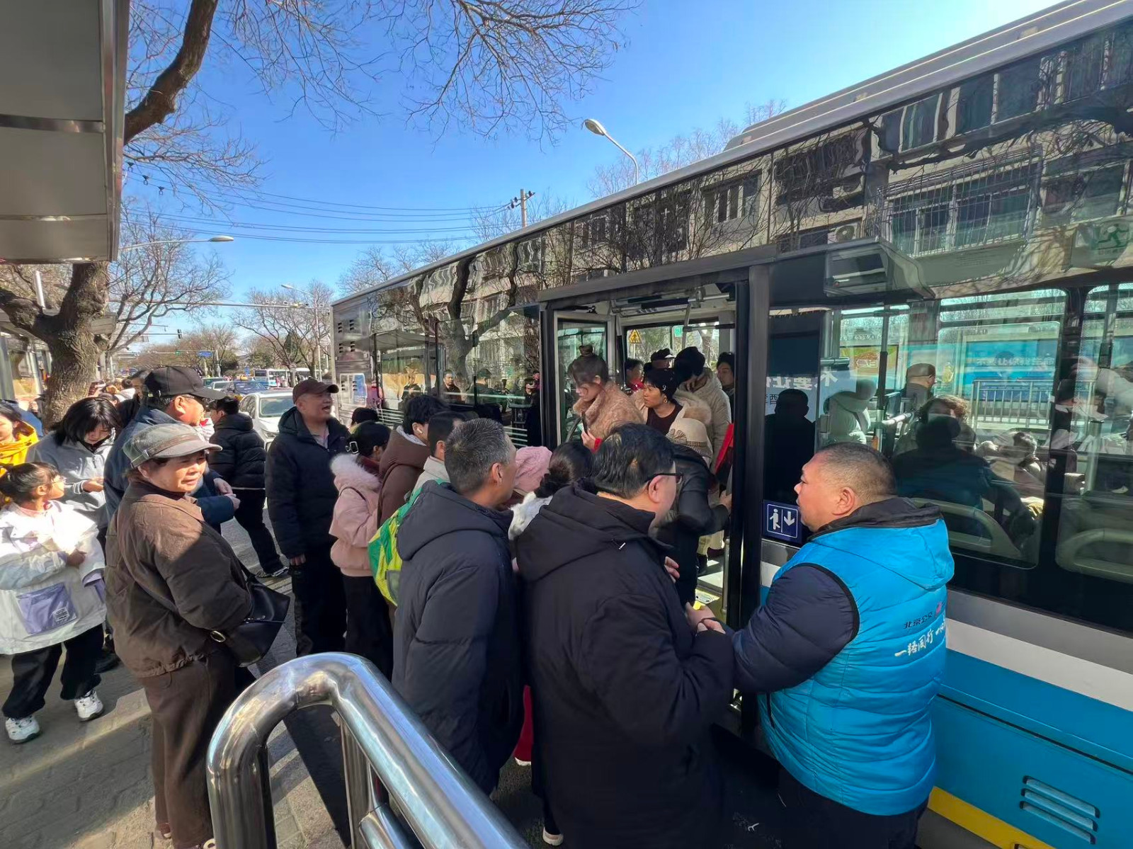 为应对春节期间庙会、景区周边大客流滞留,客二分公司组织党团员及青年志愿者在天坛站、光明楼站、神武门站等重点站台设立志愿服务岗,积极疏导客流,耐心解答乘客问询,用热情和细心营造温馨的出行环境,全力保障线路运营平稳有序。