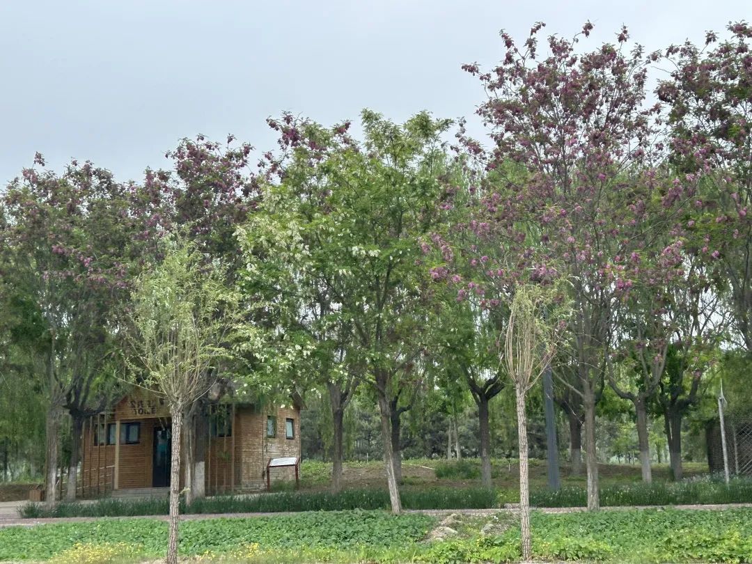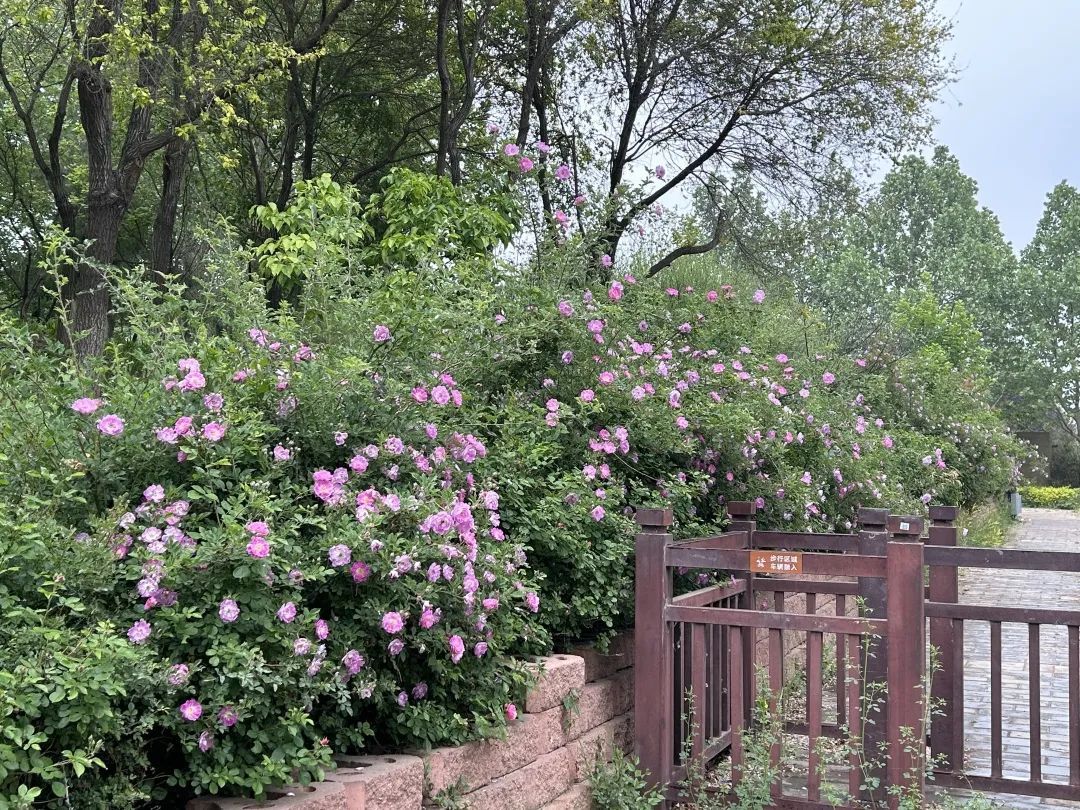 跑过带有北京亦庄标志的主题桥,转到通惠干渠路,一路上,挺拔的悬铃木、绚烂的紫叶李、朴素的二月兰、盛放的马蔺和鸢尾都是极好的陪跑员。当跑上科创十七街后,参赛者会惊喜地发现,路边高大的“护卫”已经“变”成了开满灿烂紫色花朵的刺槐,对面通明湖公园门口的月季、蔷薇也开得正好,成为这段路程中经典的景观。